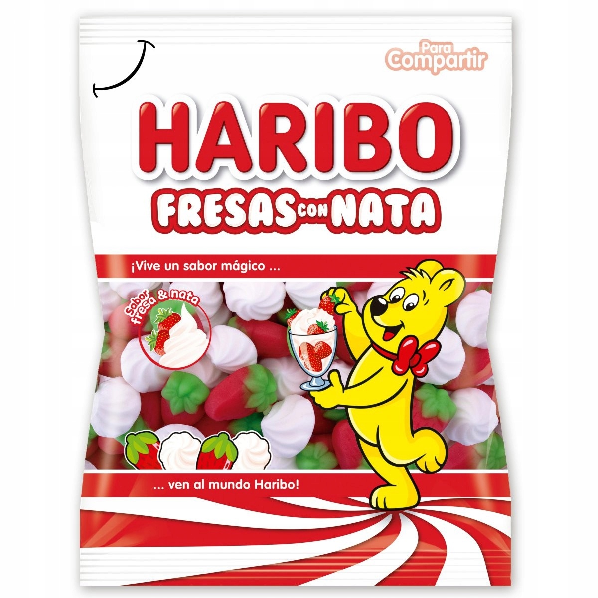 Харібо - це справді фруктовий раю для піднебіння, для дітей та дорослих! У упаковці ви знайдете квасолі у формі піни та полуниці. Будьте готові до відмінного смаку десерту. Ми любимо поєднання полуниці зі збитими вершками! Харібо з Іспанії добре відтворив цей смак.