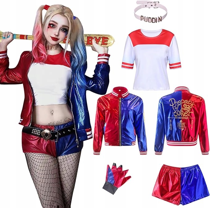 Костюми Ansamy Harley для косплею для дорослих, дітей і дівчат, набір костюмів лиходія-самогубця включає куртку, футболку, шорти та рукавички для косплею на карнавал Хелловіну