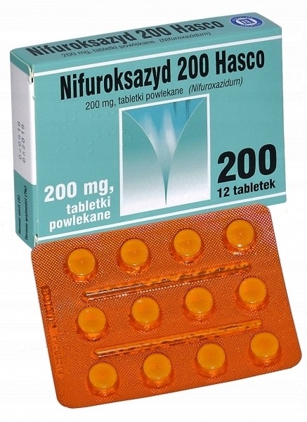 В упаковці 12 таблеток Ніфуроксазиду. Кожен з них містить 200 мг ніфуроксазиду, а також допоміжні речовини, серед яких: крохмаль картопляний, повідон, магнію стеарат, макрогол 3350, хіноліновий жовтий, полівініловий спирт, алюмінієвий лак (Е 104), тальк, жовтий захід (Е 110). ), діоксид титану (Е 171), алюміній лак (Е 132) та індигокармін. Лікарський засіб слід застосовувати відповідно до інформації, що міститься в інструкції, або за призначенням лікаря. Дорослим рекомендується приймати 800 мг ніфуроксазиду на добу (еквівалентно 4 таблеткам на добу) у 2-4 прийоми. Діти віком від 6 років повинні приймати добову дозу 600-800 мг ніфуроксазиду на добу (еквівалентно 3-4 таблеткам на добу) у 2-4 прийоми. Не можна перевищувати рекомендовану добову дозу препарату, оскільки це може призвести до симптомів передозування. Прийом занадто великої дози вимагає блювання та звернення до лікаря.