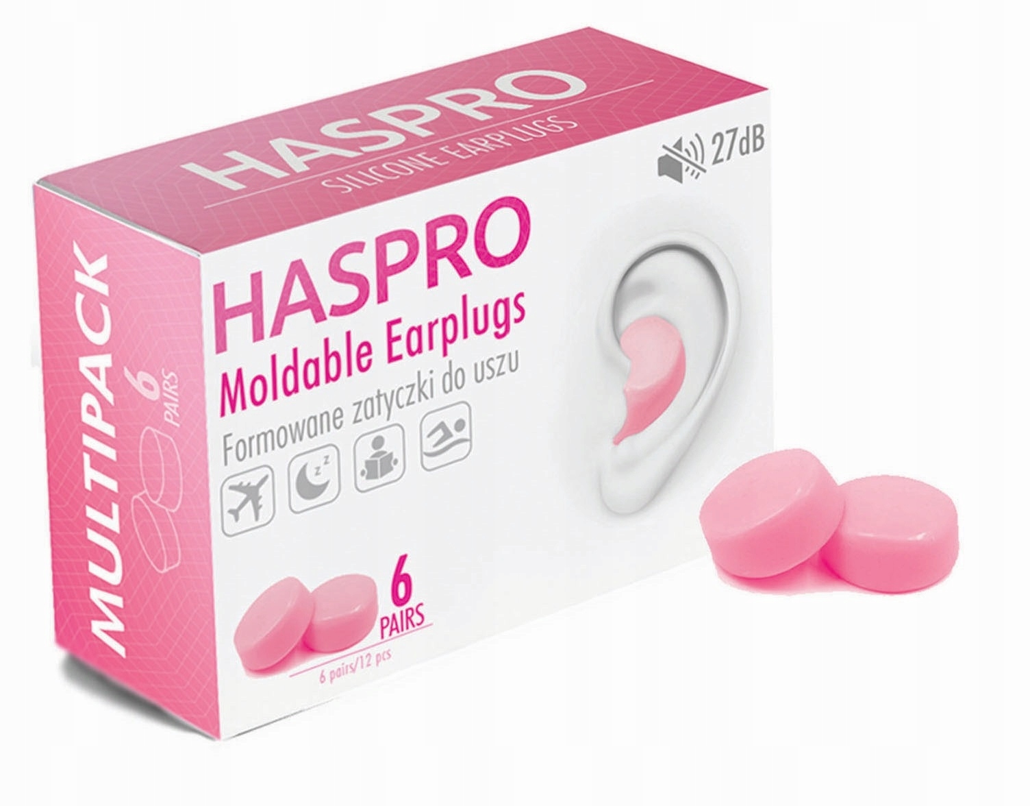 Haspro MOLD 6P — це силіконові багаторазові беруші, які легко формуються. Вони виготовлені з високоякісного силікону, який є гіпоалергенним і м'яким на дотик. Ці пробки можна формувати у вашій руці, як глину для ліплення, тож за кілька секунд ви можете отримати ідеальну форму, яка повністю підходить до вуха користувача. У набір входить 6 пар (12 штук) формованих беруш.