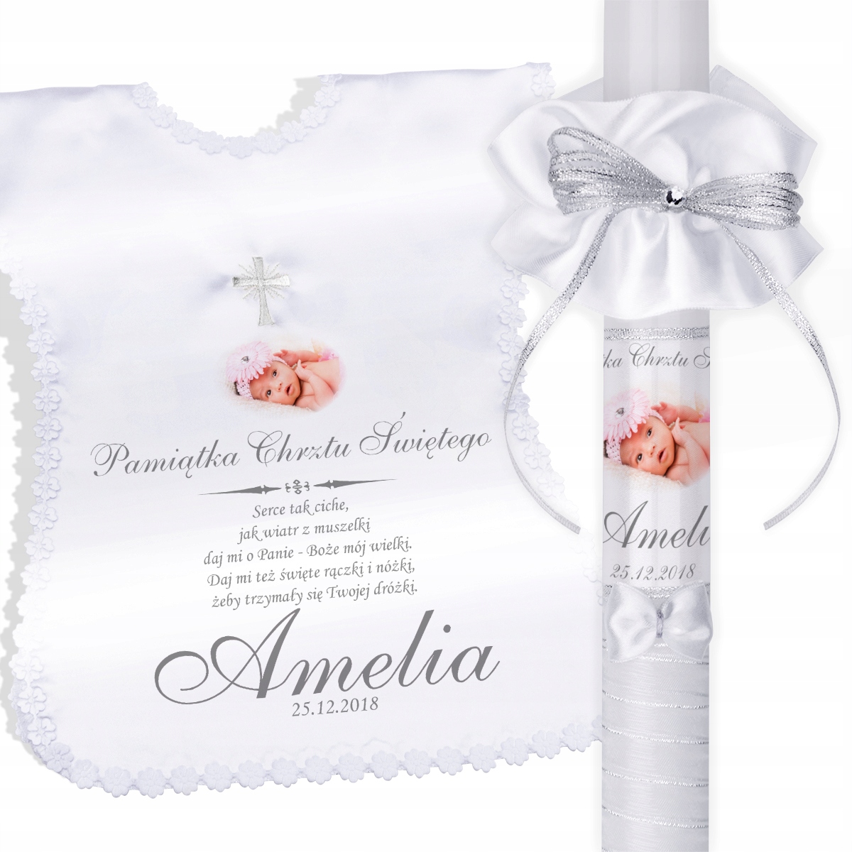 Пропонуємо вашій увазі гарний хрестильний набір з рясом і свічкою з фотографією дитини за індивідуальним дизайном.