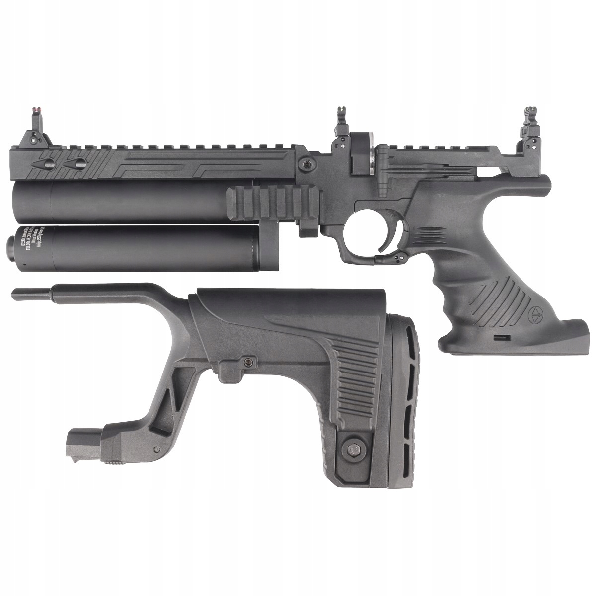Hatsan Jet II - це точний багатосхожий спортивний пістолет PCP, створений для екранування та рекреаційної зйомки. Завдяки телескопічній регульованій колбі, за кілька моментів ви перетворите його на компактну гвинтівку. Модель оснащена прицілами, монтажною рейкою та подвійним резервуаром тиску з потужністю 40 + 40 см . Суцільна конструкція, висока ергономіка та чудові параметри роблять його ідеальним вибором для вимогливих стрільців. Ергономічна ручка забезпечує стабільність та комфорт використання. Можливість видалення колби означає, що пістолет також може бути використаний у версії без стрілецької ручки. Низька та кокастина бочка покращує керівництво кулі, що перетворюється на кращу точність. Вбудований датчик тиску дозволяє стежити за рівнем тиску.