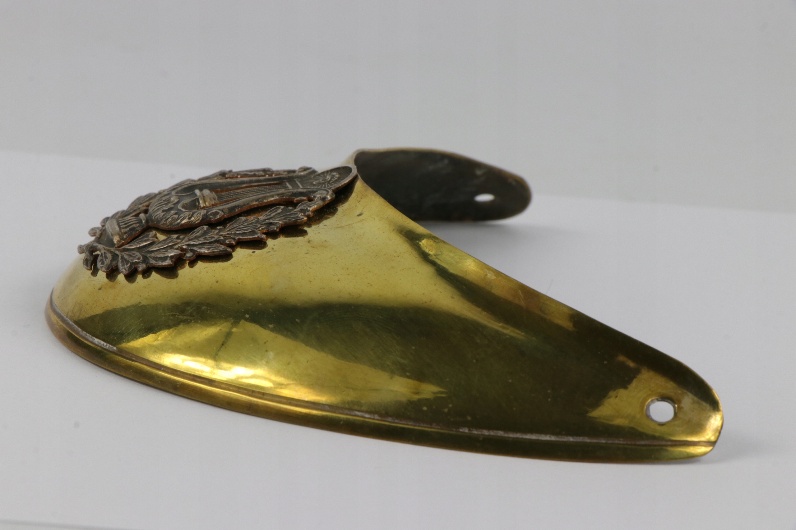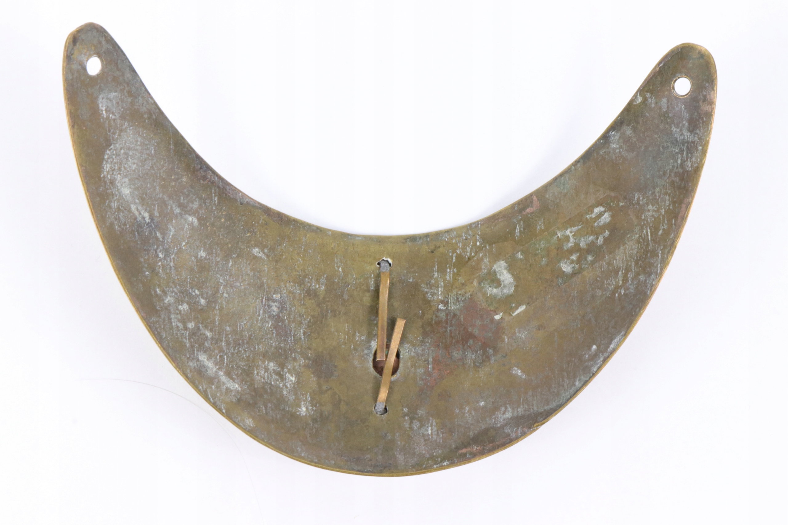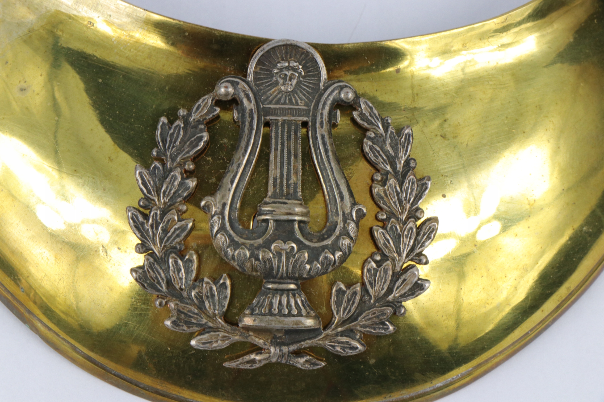 Французька горжета офіцера оркестру, найімовірніше часів Наполеона III. Срібна аплікація, розміщена на латунній пластині.