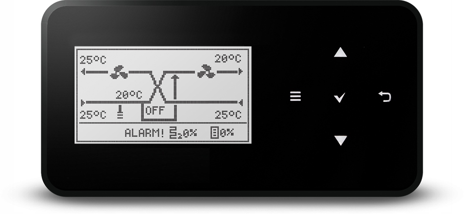 Система управління разом з електричним з'єднанням була побудована в бічній частині панелі управління, поза пристроєм. З'єднання з панеллю оператора здійснюється через кабель управління. Система управління дозволяє регулювати роботу пристрою відповідно до попиту користувачів. Система також підтримує додаткові зовнішні пристрої, наприклад Брудний теплообмінник (GWC), додатковий обігрівач або повітряний кулер і дозволяє співпрацювати з системою управління BMS. Пристрій також можна керувати через мобільний додаток або через Інтернет (необов’язково).