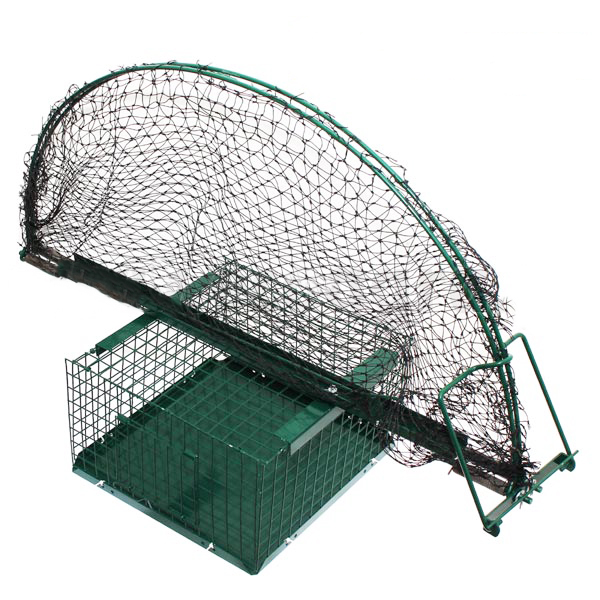 - Розміри пастки для птахів:ширина: 96,5 см; діаметр однієї арки: 44 см; діаметр сітки: 2,5 х 2,5 см