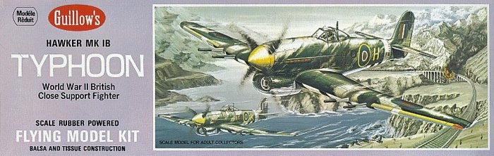 Модель літака Hawker Mk IB Typhoon від американської компанії Guillows — чудова розвага для моделістів, які люблять будувати маленькі моделі літаків Другої світової війни. Модель в масштабі 1:28 можна адаптувати під гумовий привід (елементи в комплекті) або під електродвигун. У набір входить: