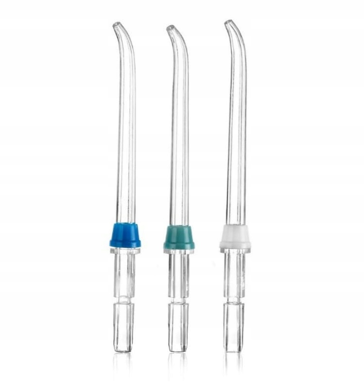 Оригінальні насадки для іригатора RST5106. Універсальна насадка (наконечник) використовується для очищення міжзубних проміжків і лінії ясен. Універсальні наконечники слід міняти щонайбільше кожні 6 місяців. У набір входять 3 наконечника в кольорах: зелений, синій і білий.