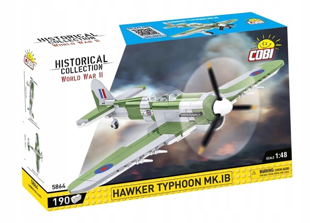 Британський винищувач-бомбардувальник на озброєнні Британських ВПС з 1941 року. Його основним завданням була боротьба з німецькими винищувачами, а також підтримка бойових дій на передовій, атакуючи наземні цілі. Typhoon був відомий своєю високою максимальною швидкістю понад 660 км/год і потужним озброєнням. Чотири 20-мм гармати Hispano-Suiza забезпечили ефективність ураження надводних цілей. Наша блочна модель доповнює колекцію бійців, випущених в масштабі 1:48. Він ідеально підійде як «охорона» для величезних бомбардувальників, які ми випускаємо. Це також ідеальна модель для гарного початку вашої пригоди з будівельними блоками COBI. Літак має обертові колеса та принти. 190 високоякісних елементів, виготовлених в ЄС компанією з більш ніж 20-річними традиціями, відповідають стандартам безпеки для дитячих товарів, повністю сумісні з конструкторами інших марок, кубики з принтами не деформуються і не вицвітають під час гри або під час вплив температури, чіткі та інтуїтивно зрозумілі інструкції на основі малюнків і значків, площина в масштабі 1:48. Розміри моделі (Д x Ш x В): 20,5 см (8") x 26 см (10,2") x 10,5 см (4,1" )