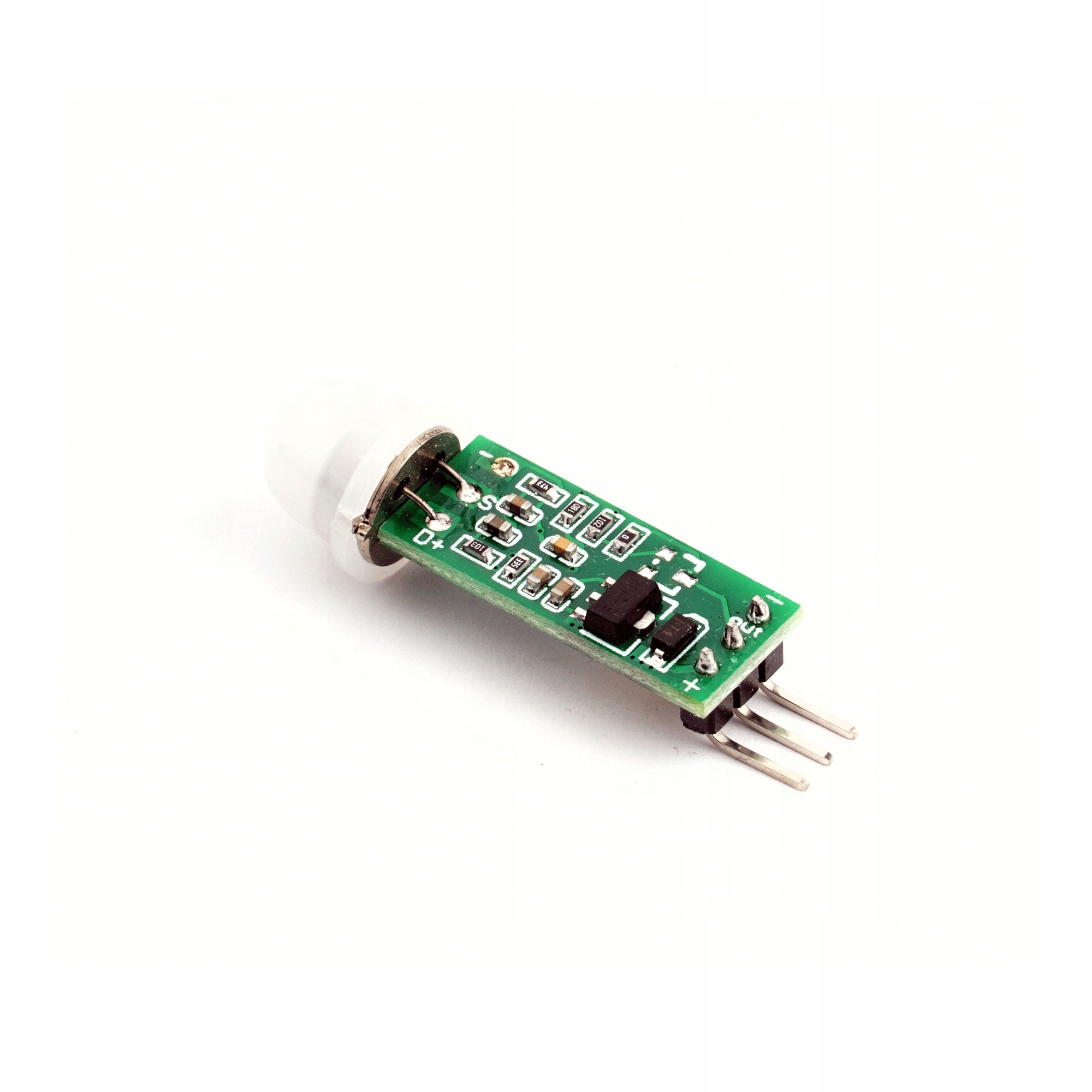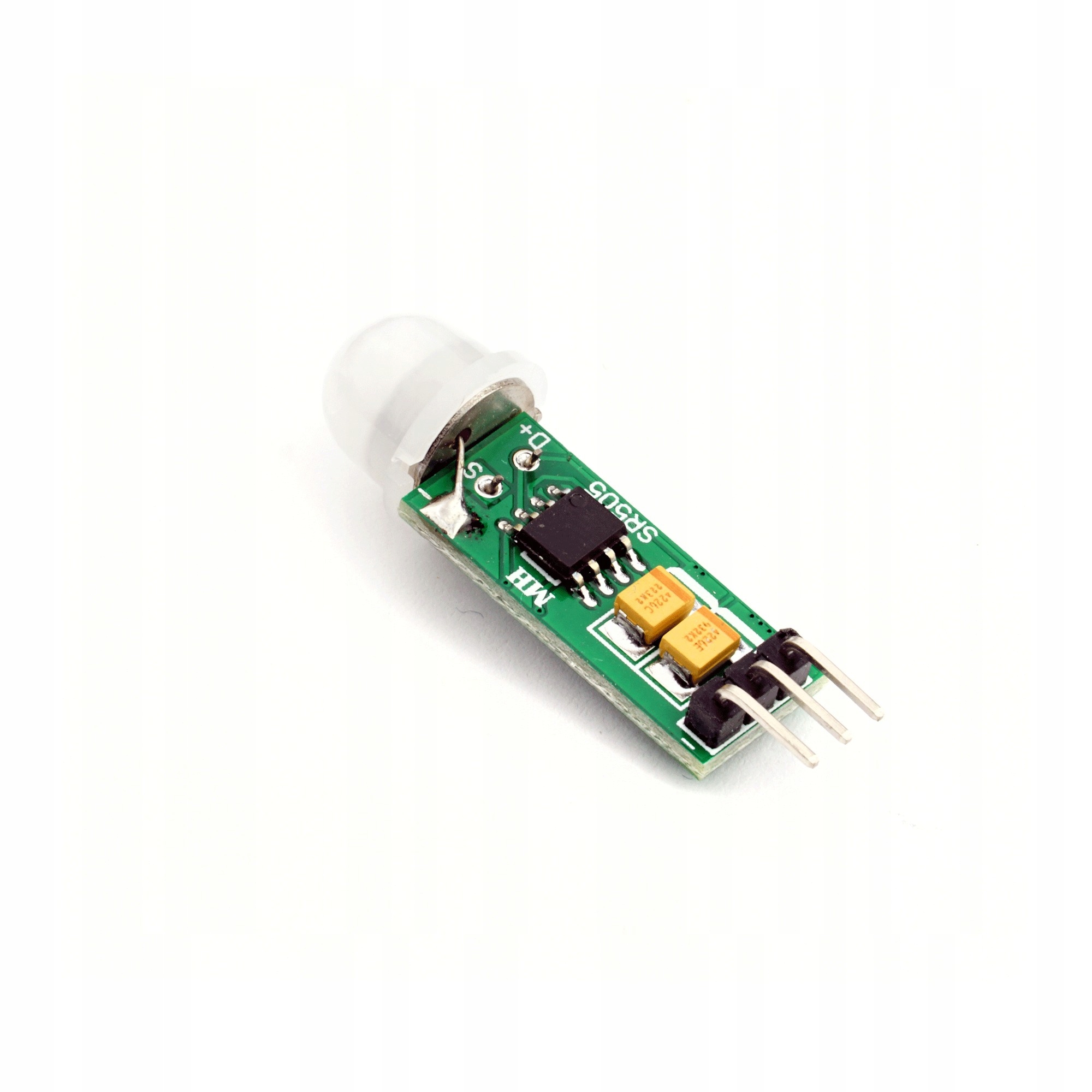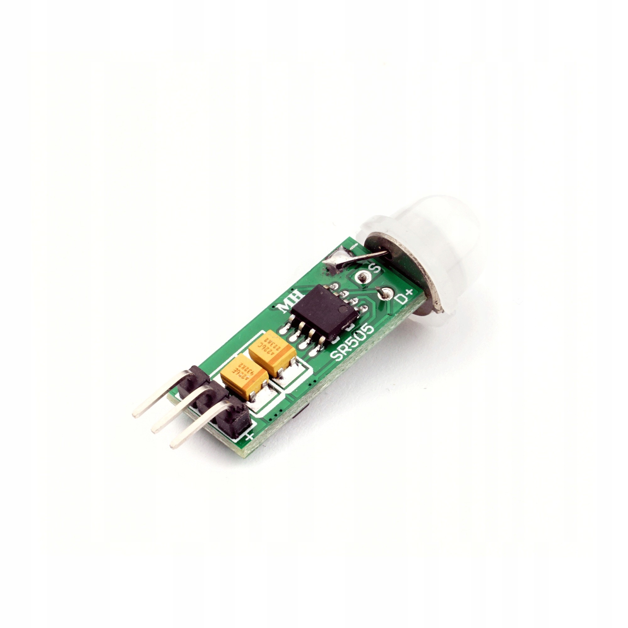 Модуль датчика руху PIR HC-SR505 у мініверсії. Пасивний інфрачервоний датчик. Він працює в широкому діапазоні напруг від 4,5 В до 20 В і проводить вимірювання на відстані до 3 м з кутом огляду 100°. Він має цифровий вихід, який стає високим, коли виявлено рухомий об’єкт.