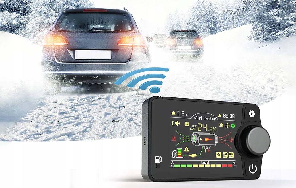 Налаштуйте роботу нагрівача відповідно до своїх потреб. Ви можете регулювати його потужність в діапазоні 1,4-5 кВт і температуру в діапазоні 16-35°C. Пристрій також має функцію термостата. Що це означає? Коли температура опуститься нижче певного значення, виріб автоматично запуститься, а коли він нагріє простір до потрібного рівня, автоматично припинить роботу. Завдяки цьому ви можете бути впевнені, що ваш автомобіль чи кемпер завжди приємно теплі!