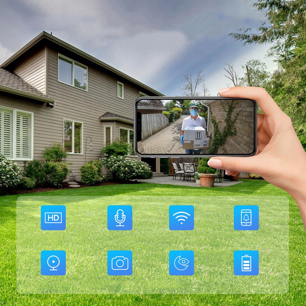 ✅ [Відеодзвінок] - Ви можете дивитися та спілкуйтеся з гостями на мобільних телефонах і планшетах у будь-який час і в будь-якому місці та передайте голос чіткіше завдяки технології шумозаглушення та адаптації швидкості. Він підтримує розширення TF-карти (максимум 64G, не включено), а відеозаписи можна завантажити та перевірити в будь-який час.