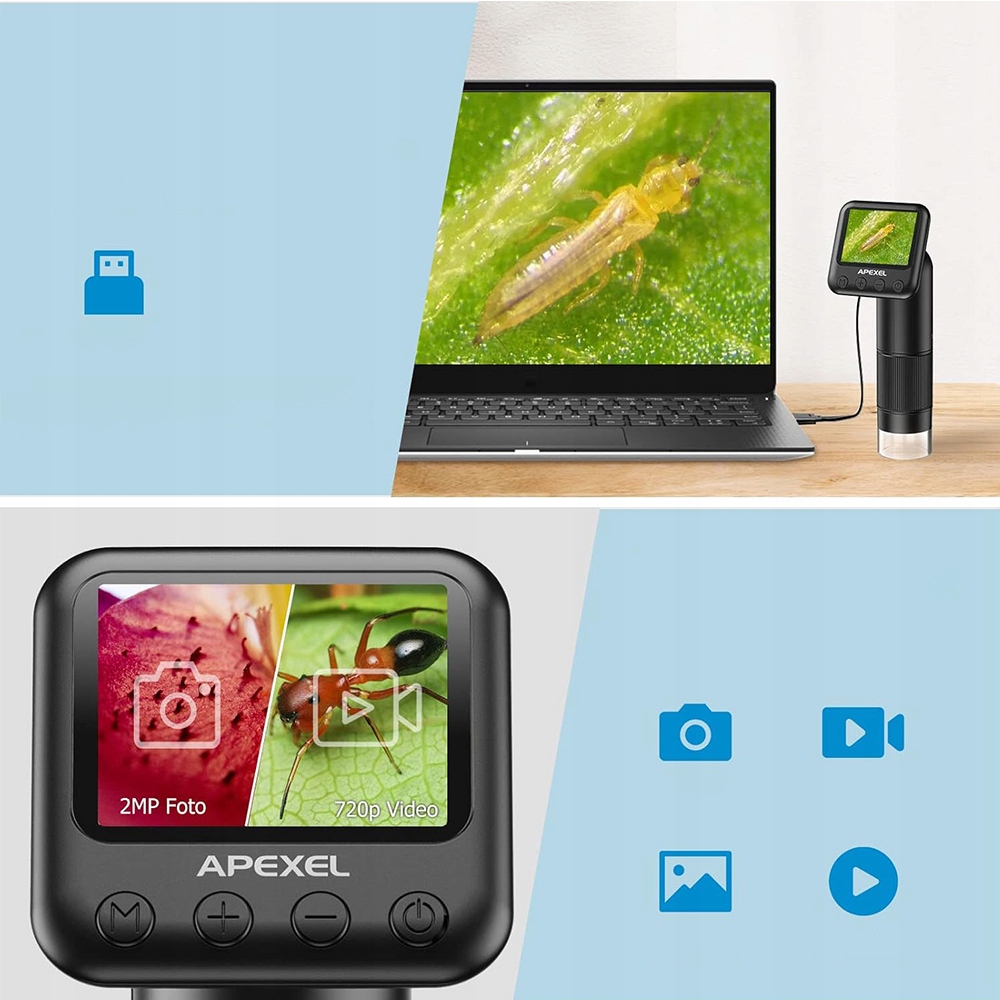 - Цифровий РК -мікроскоп з камерою з роздільною здатністю 2 мегапікселя та точним регулюванням фокусу. Рослини, монети, ювелірні вироби, зварні шви та багато інших (5 слайдів включено).