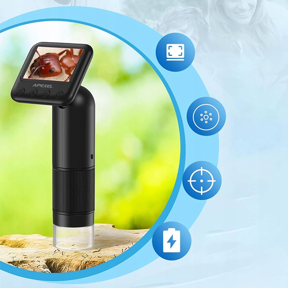 - Портативний цифровий мікроскоп, оснащений 2-дюймовим РК-екраном HD та 6 світлодіодним світлом, з простою функцією фокусування, завдяки якому ви можете встановити об'єкт. Лінзи, а потім повільно встановіть фокус відображеної інформації, щоб побачити деталі.