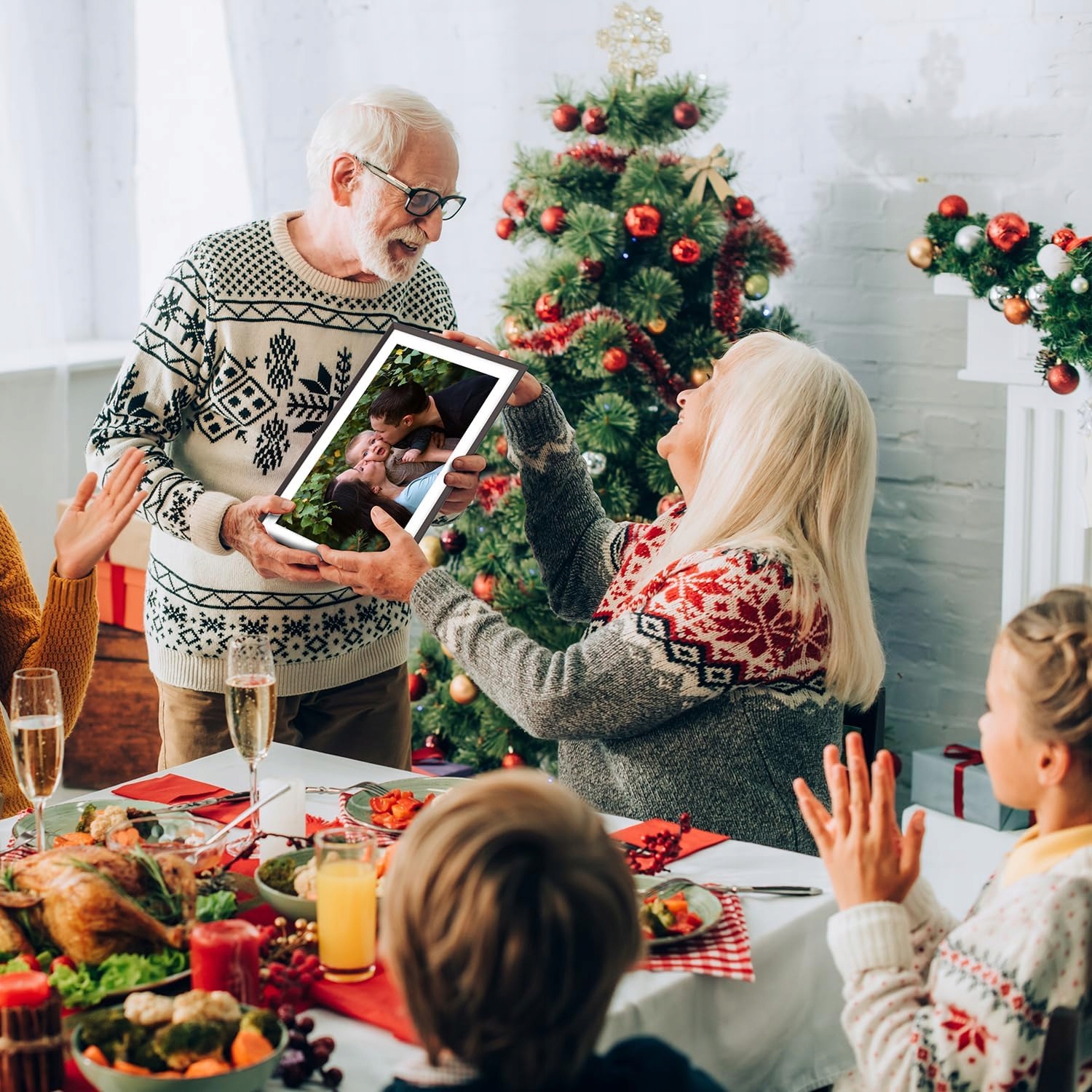 🖼 Цей електронний фотокадр з Wi-Fi використовує негайно функцію спільного використання для консолідації спогадів, тож ви можете поділитися останніми чудовими моментами з близькими людьми в будь-який час та місце. Ідеально підходить для Дня матері, Дня батька, Різдва, дня народження та весілля.