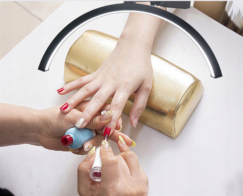 【Світло, що заповнює підлогу у формі півмісяця】 Цей світильник, розроблений у характерній формі півмісяця, має 238 високоякісних намистин, потужність 36 Вт і високий індекс передачі кольору понад 90, що ідеально підходить для ведення відеоблогів на комп’ютері, прямих трансляцій із віталень. краса, проекти краси тощо.