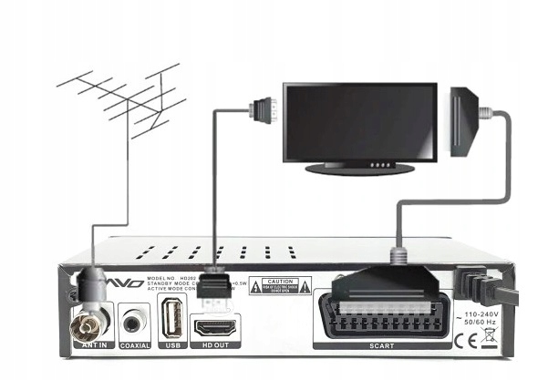 DVB-T2 RAVO HD202 digital ефірний телевізійний тюнер HEVC дозволяє приймати безкоштовні цифрові телеканали, що транслюються в стандарті H.265/HEVC. Його також можна використовувати як високоякісний медіаплеєр і записувач PVR.