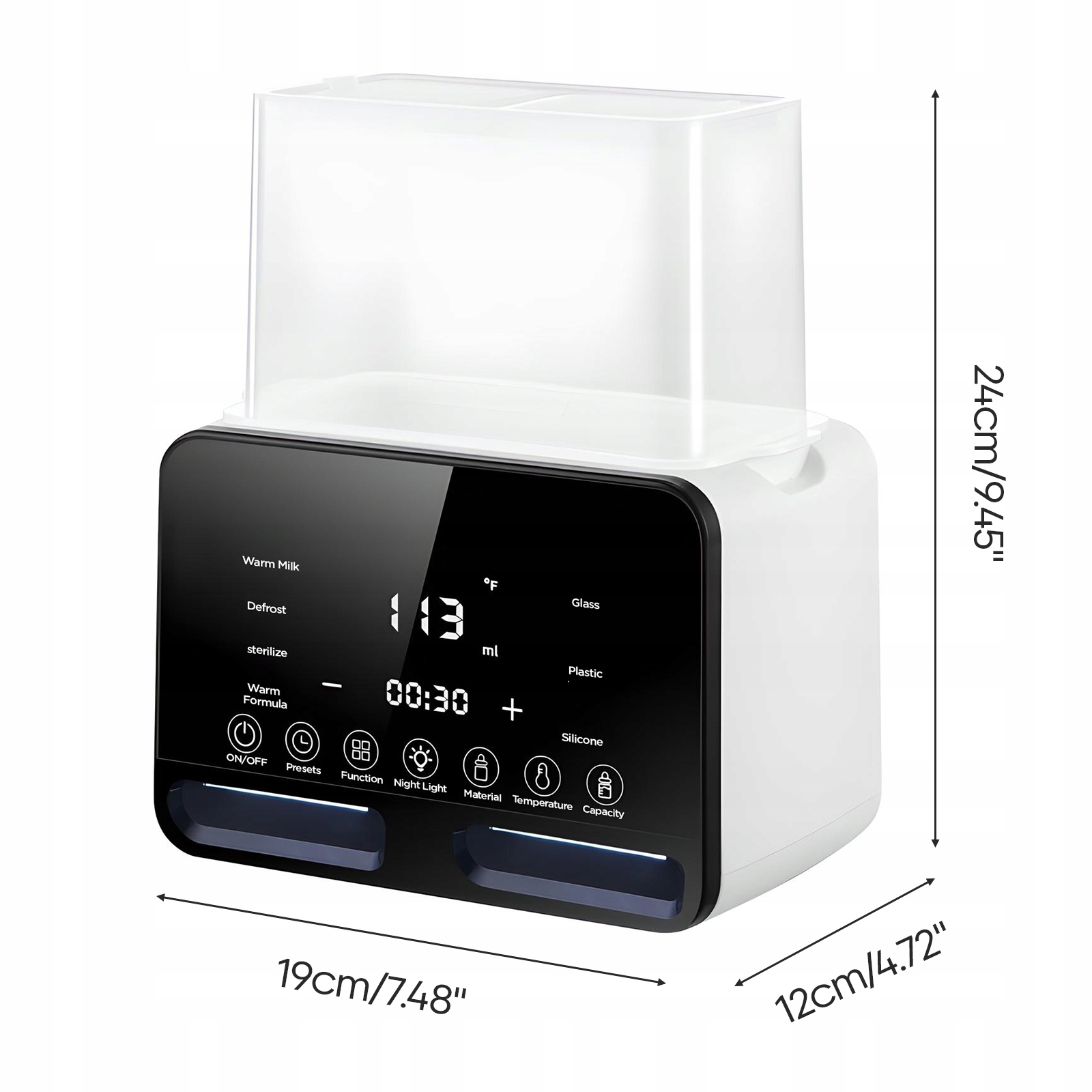 Більше, ніж тепліше - це ваш помічник у вихованні! Стерилізуйте пляшки парою, обережно розморозьте заморожене молоко, розігрійте (наприклад, яйця чи вівсянку) або залийте суміш за лічені хвилини. Вбудований таймер і звукові сповіщення дозволяють підготуватися заздалегідь, а дизайн широкого отвору підходить для будь-якої форми пляшки. Навіть бабусі й дідусі можуть освоїти керування одним дотиком!