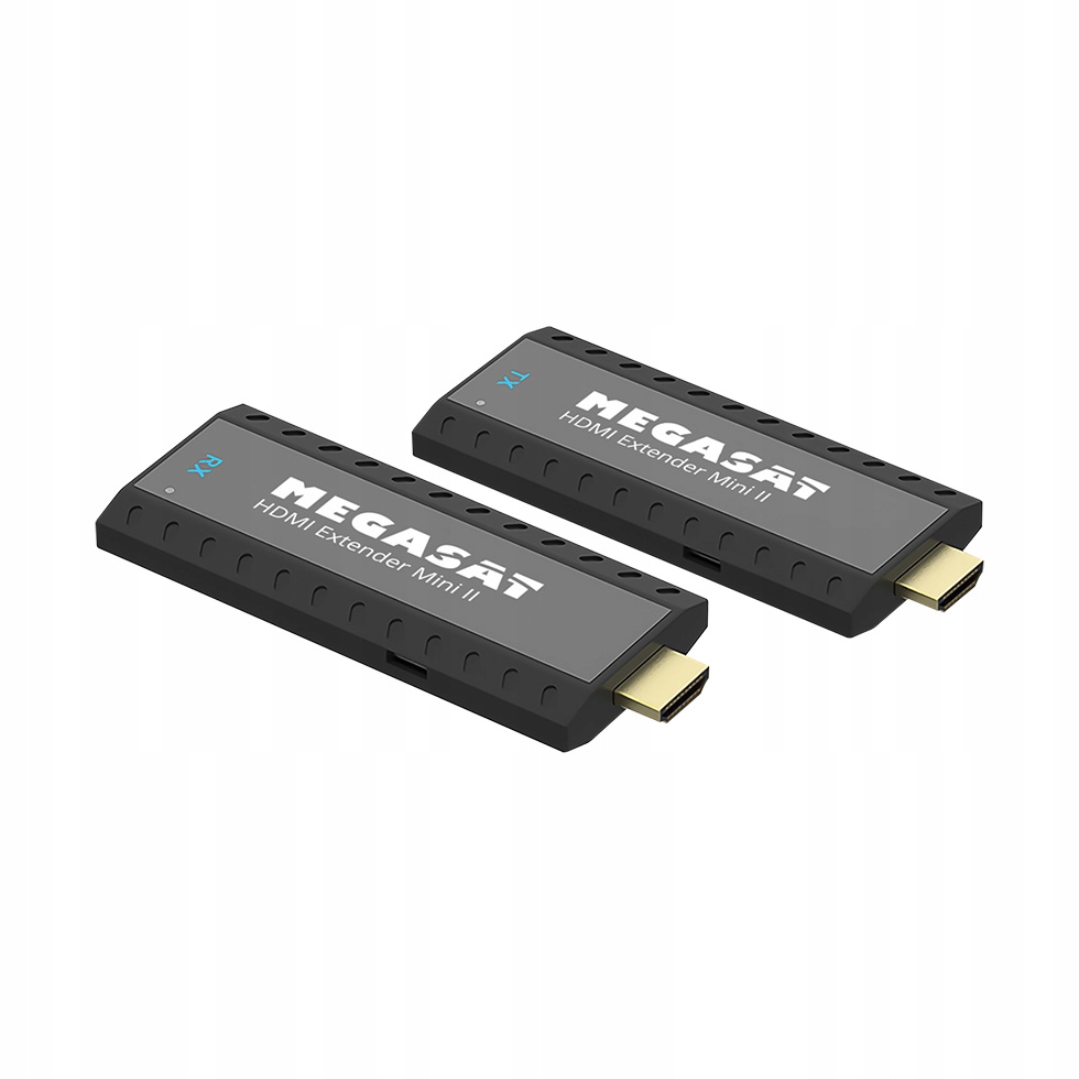 Megasat HDMI Extender Mini II дозволяє бездротову передачу всіх пристроїв HDMI. Замініть кабель HDMI бездротово і розмістіть телевізор або проектор із підтримкою HDMI, де ви хочете. Передавач має вхід HDMI (наприклад, для супутникових приймачів) та вихід HDMI до телевізора, який також може підключити сигнал у режимі очікування. Передача сигналу до 30 м. Пристрої надсилають повний HD -сигнал на 1080p. Частота, що використовується в передачі, становить 5,8 ГГц, що забезпечує дуже стабільний зв’язок між пристроями.