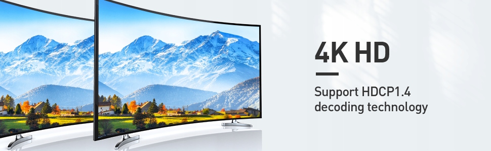 Сплітер HDMI під’єднано до HDMI/HDCP 1.4/1.3/1.2. Підходить для пристроїв із входом HDMI 1.4: Xbox, PS3/PS4, Blue Ray DVD-плеєр, Chromecast, супутниковий сигнал, HD DVD, комп’ютер тощо. / Як вихід: проектори, монітори тощо. LPCM7.1/DTS/Dolby TrueHD/ Dolby AC3/Dolby Atmos.