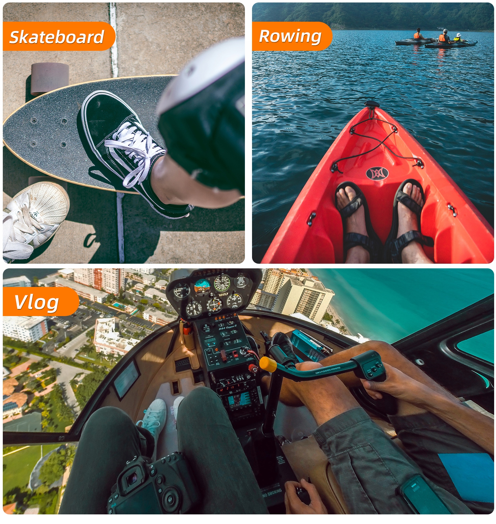 Пов'язка ідеально підходить для скелелазіння, їзди на велосипеді, мотоциклі, стрибків з парашутом, парапланеризму, віндсерфінгу, вітрильного спорту та всіх інших видів спорту, де можна прикріпити камеру до голови та записувати незабутні моменти.