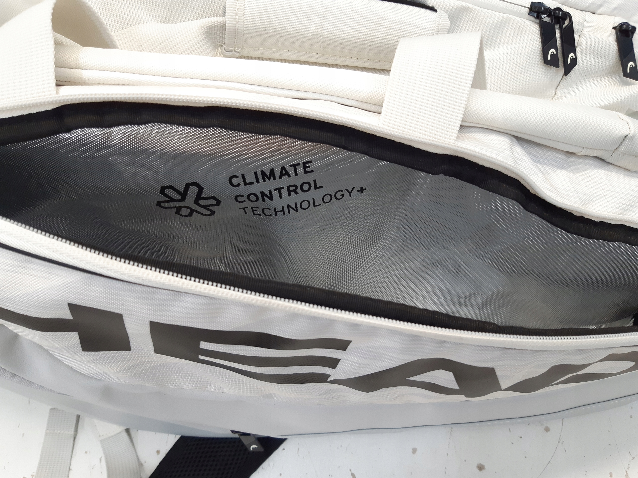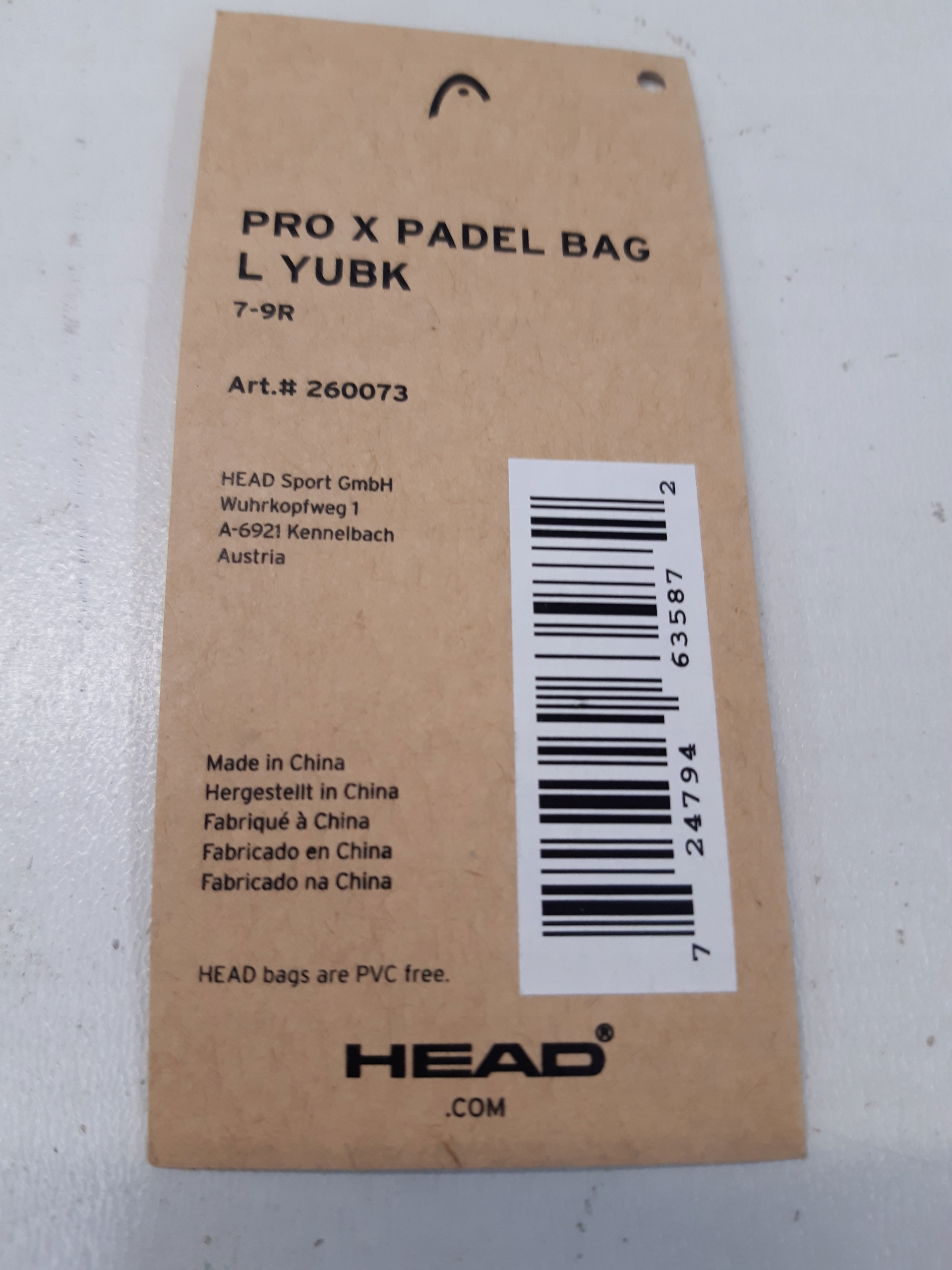 Вона вміщує до дев'яти ракеток, а їх захист від екстремальних температур забезпечує CCT+ (Climate Control Technology). Незважаючи на дещо менший розмір, ніж у дочірньої моделі PRO X RACQUET BAG XL YUBK, PRO RACQUET BAG L пропонує дуже великий простір, розділений на два відділення та три кишені - одну внутрішню та дві зовнішні. Система перенесення сумки дозволяє покласти її на плече або спину. Етикетка продукту виготовлена з переробленого паперу та перев’язана конопляною ниткою – приклад того, як HEAD намагається зменшити використання пластику.