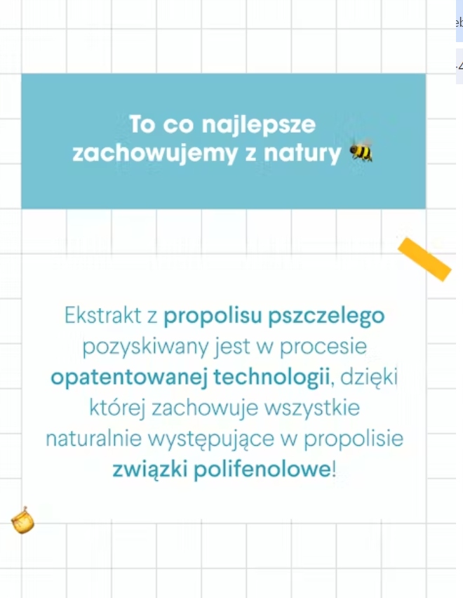 Екстракт прополісу, що міститься в продукті, стандартизований до 12% поліфенолів.