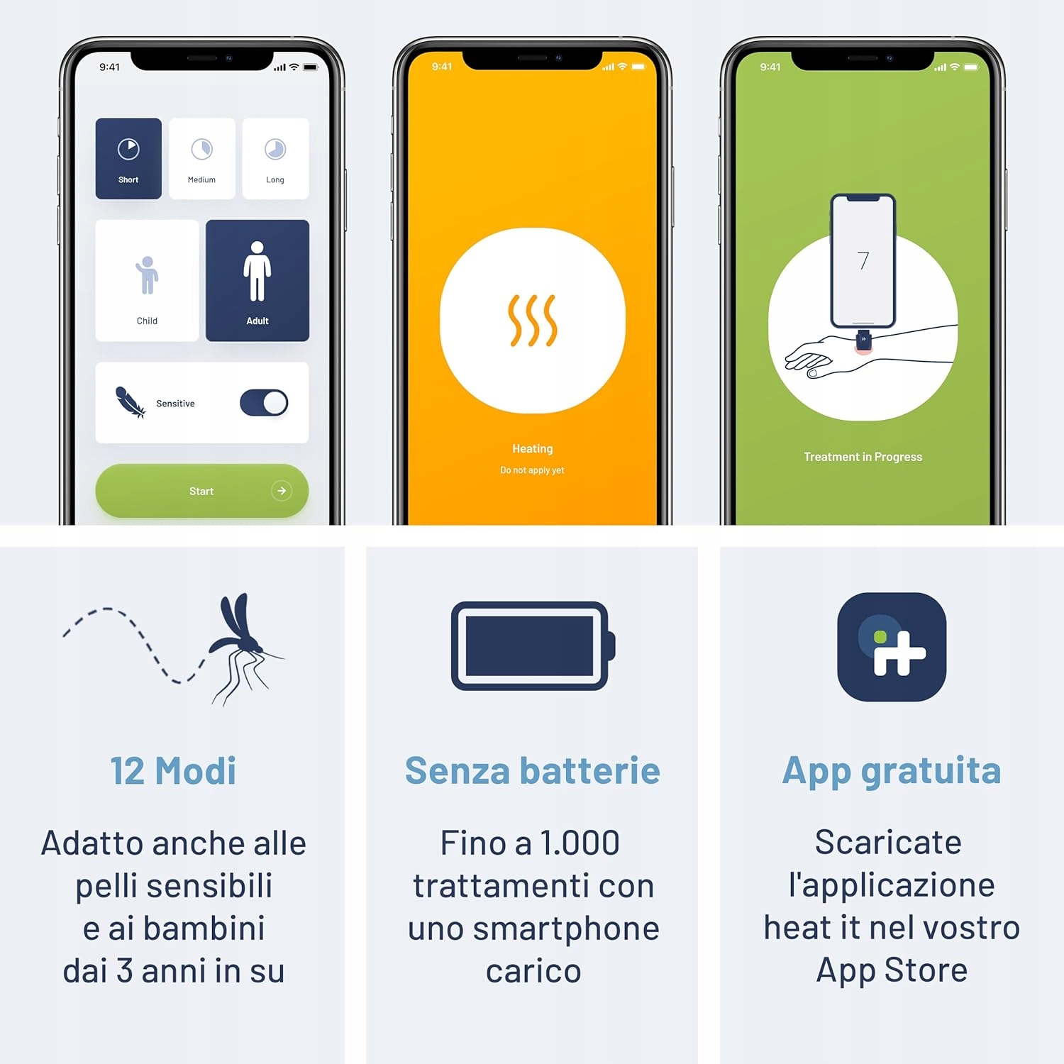 ✅ Зроблено в Німеччині - нашій точилці не потрібні власні батареї. Завдяки цьому ви можете використовувати інноваційний продукт без додаткових витрат. За одну зарядку мобільного телефону можна використовувати до 1000 разів. ✅ Завжди під рукою - обігрівач ідеальний компаньйон для повсякденного використання, під час подорожі та під час занять спортом. Завдяки компактному дизайну він завжди буде з вами на брелоку, і ви готові до сверблячих укусів. ✅ Для всієї родини - за допомогою програми ви можете індивідуально налаштувати лікування під свої відчуття. Тому нагрівання також підходить для чутливої шкіри та дітей від 3 років. (Власна заявка 12 Дж.). ✅ Термічна обробка - принцип роботи без хімікатів лише з концентрованим теплом (прибл. 51°C) підтверджено медично. Це дозволяє надійно і легко лікувати укуси комах. ✅ Stitch Healer – просто позбудьтеся сверблячих швів за допомогою смартфона. Для зняття свербіння та болю при укусах бджіл, ос, губок і комарів.