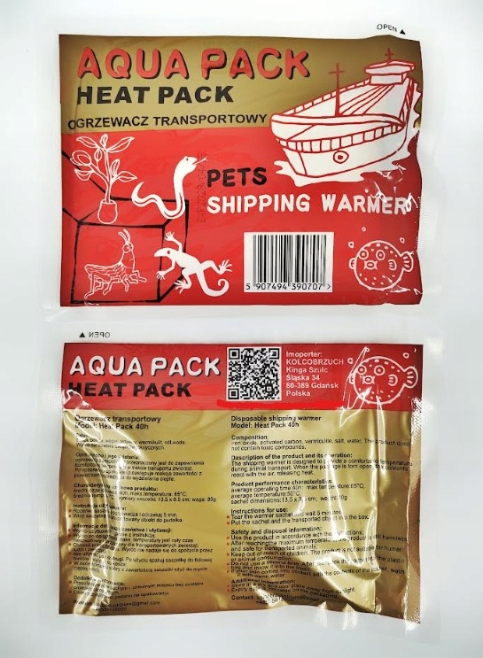 - Довготривала робота - HEAT PACK випромінює тепло протягом 40 годин, забезпечуючи відповідну температуру протягом усього шляху транспортованих тварин або рослин.