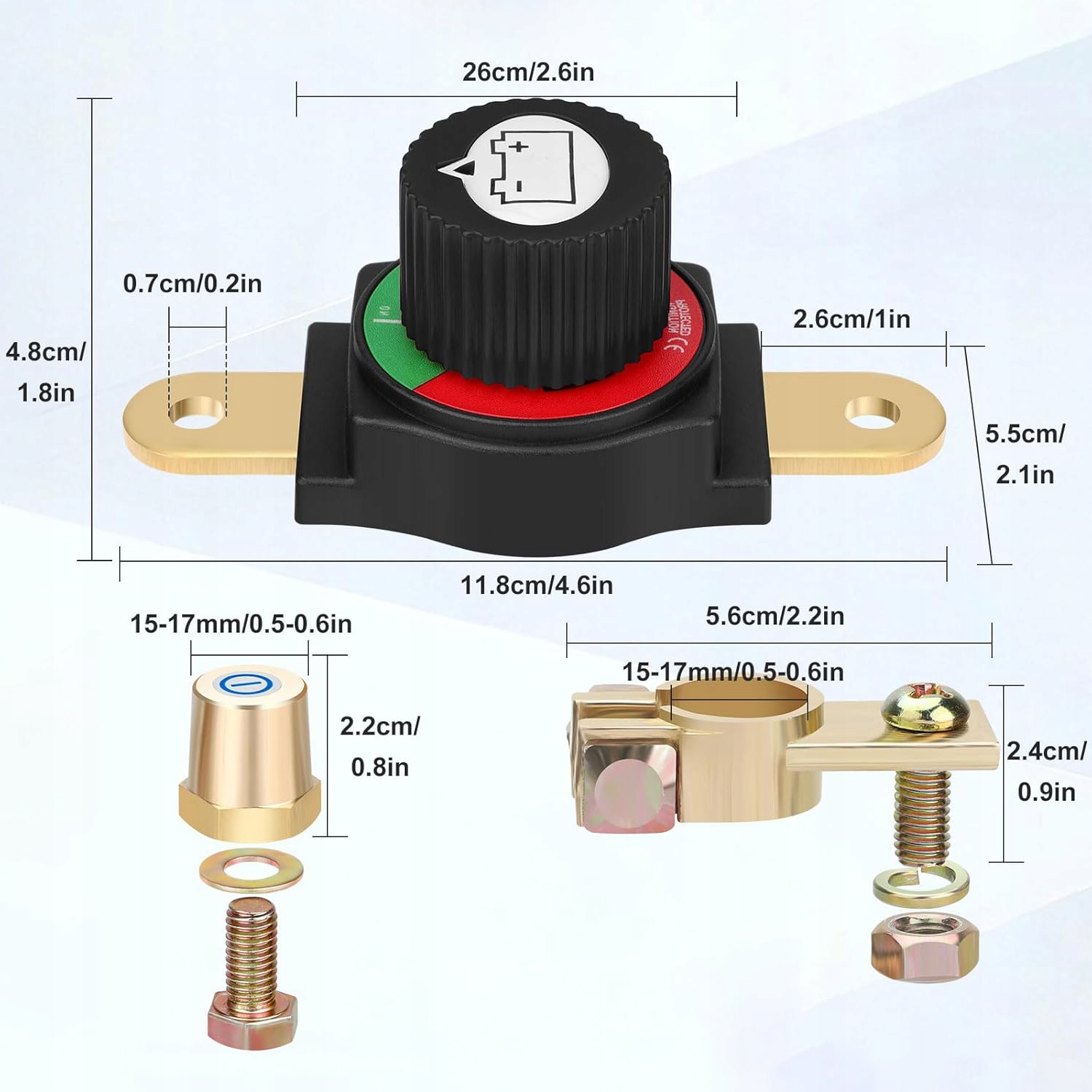 - 【Високоякісні матеріали】В роз’єднувачі акумулятора використовуються латунні клеми, нікельовані чавунні гайки та вогнестійкий матеріал PA66, який має чудову стійкість до корозії та довговічність, забезпечуючи довговічність і підвищуючи безпеку в різних застосуваннях. Ідеально підходить для використання в суворих умовах.