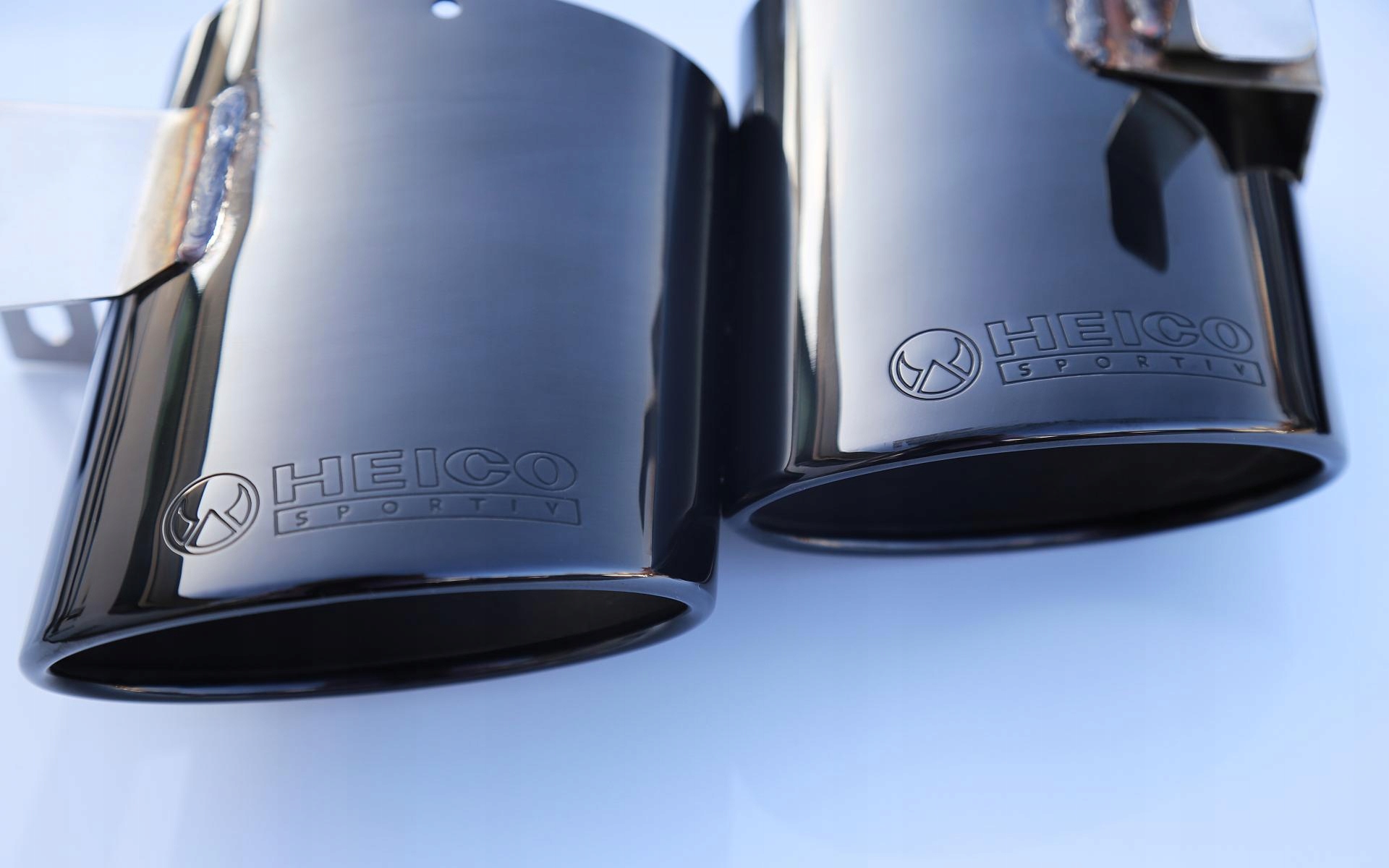 Спортивний задній дифузор HEICO Sportiv є стилістичним посиланням на автоспорт. Чотири овальні вихлопні труби з чорним хромом візуально вказують на наявність додаткової спортивної вихлопної системи. Компонент ідеально підходить до переднього спойлера як частина повного пакету стилю.
