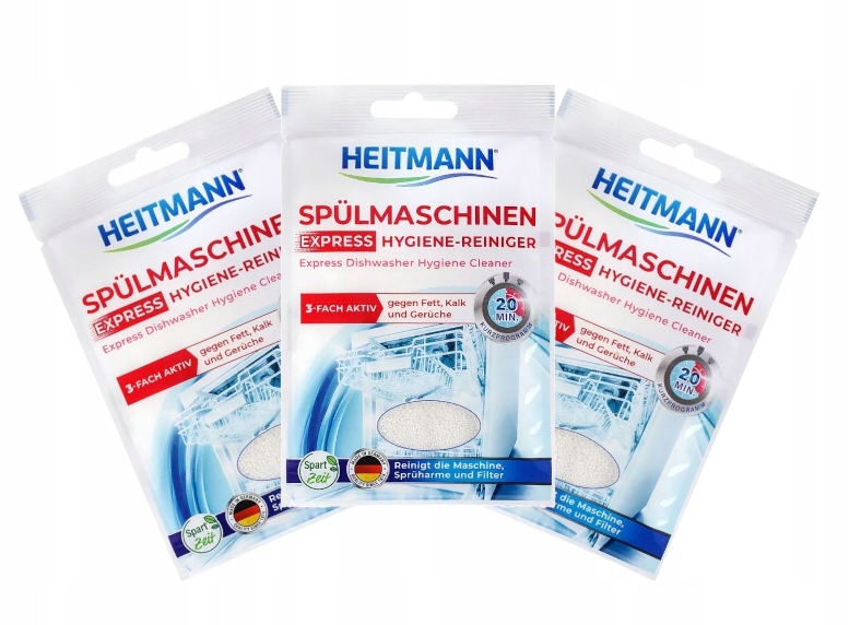На відміну від традиційних засобів для чищення, засіб для чищення посудомийної машини Heitmann Express працює за короткою програмою. Завдяки потрійній активній формулі видаляє накип, жир і неприємні запахи з усієї посудомийної машини.