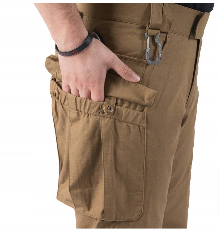 Штани MBDU® є частиною нашої вдосконаленої бойової форми Modern Battle Dress Uniform®. Уніформа виготовлена з матеріалів найвищої якості, правильний підбір яких забезпечує не тільки її довговічність, але, перш за все, повну свободу рухів, таку необхідну на сучасному полі бою. Штани мають трохи вільний, профільований крій. Пояс застібається на липучки, що забезпечує додаткове регулювання окружності. Широкі шлевки, адаптовані до ременів шириною до 50 мм, забезпечують стабільність навіть у випадку з ременями з додатковими навантаженнями, такими як кобури або сумки. Вставки з тканини VersaStretch®, розташовані на спині та в промежині, забезпечують повну свободу рухів. Класичні кишені на стегнах мають посилені краї, щоб захистити їх від надмірного зношування, спричиненого обоймами від ножів, ліхтариків тощо. Крім того, задні кишені, також із посиленими краями, можуть легко вмістити навіть великі предмети, такі як магазин для гвинтівки. На стегнах є місткі кишені карго, що застібаються на кнопки. На литках є невеликі кишені із застібкою на липучці, у які можна помістити особистий одяг.