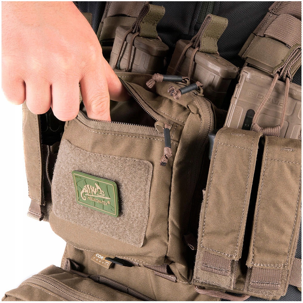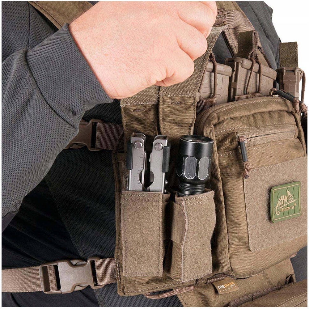 - Чотири фіксовані кишені зі знімними клапанами для пістолетних магазинів, багатофункціонального інструменту, ліхтарика.