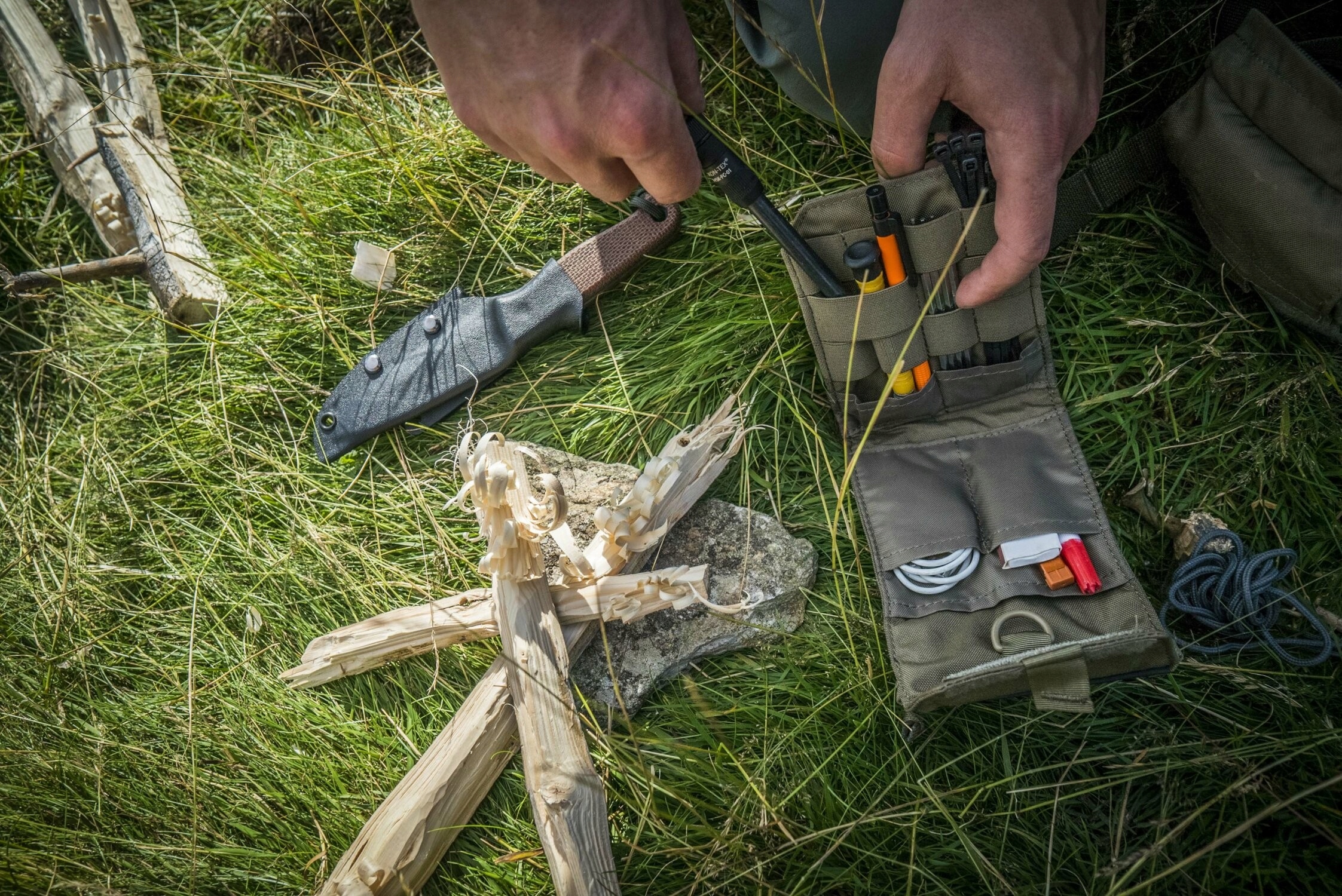 досить велика зовнішня кишеня, закрита з липучкою на передній частині колодки. Всередині він підійде до великого смартфона або навіть зовнішнього диска. Панель липучки була пришита в кишені, яку можна використовувати для персоналізації. На внутрішній стінці колодки є велика панель липучка, на якій розміщується незалежний організатор, незалежний організатор. Після розриву елемент може бути прикріплений до іншої панелі на липучках (рюкзак або піджак) або забезпечити липучку, щоб він не підключився з іншими елементами обладнання.