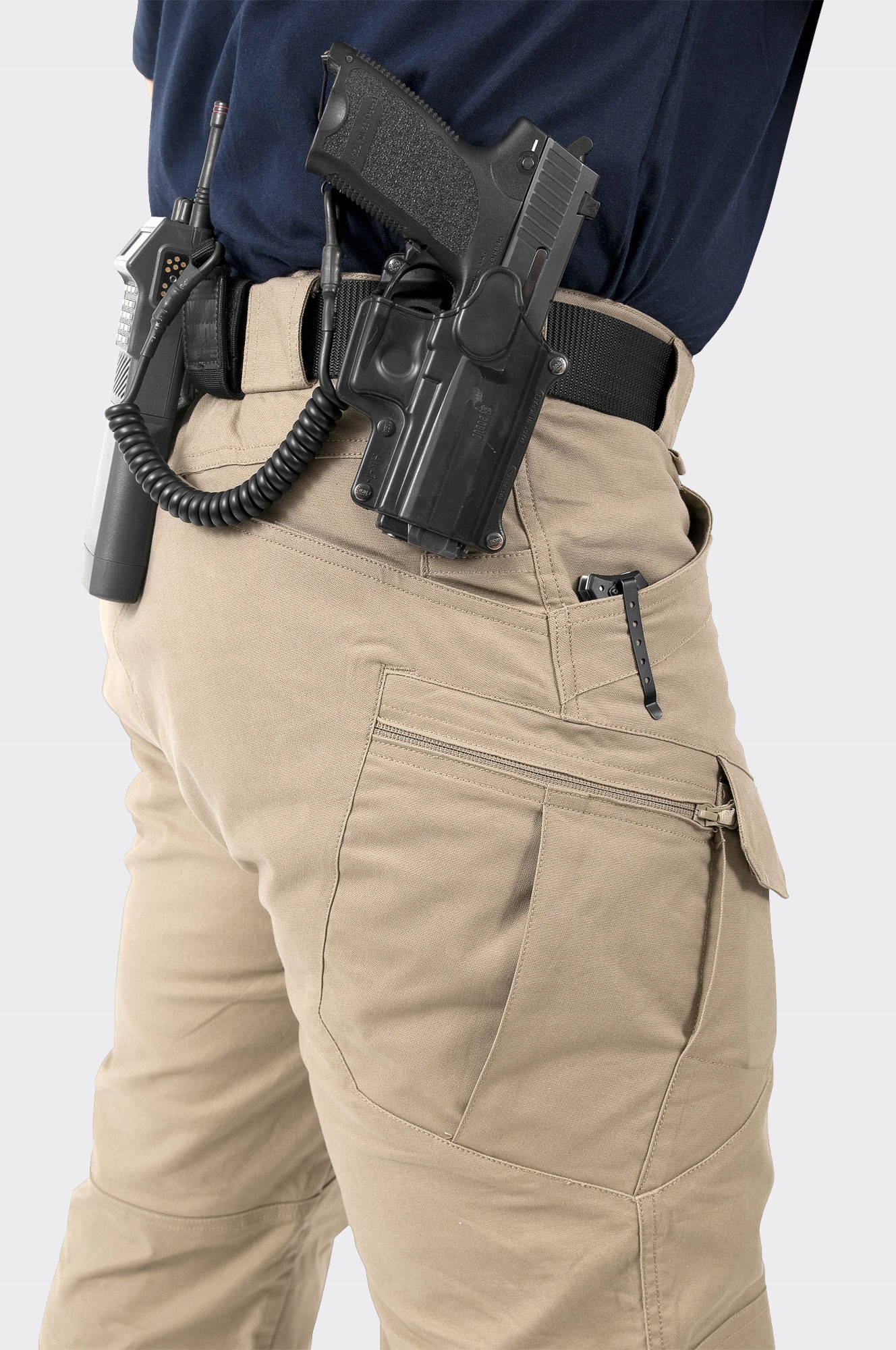 Штани UTP® є базовим елементом серії Urban Tactical Line®. Крій і розташування кишень гарантують, що штани UTP® зберігають цивільний вигляд, не розкриваючи особу користувача. Конструкція UTP® дозволяє переносити важливе обладнання та поєднується з анатомією людських рухів. Набір кишень дозволяє розташувати спорядження близько до центру ваги - навколо стегон і талії користувача. Використаний гнучкий матеріал впливає на легкість і швидкість пересування в тактичних умовах. Колір: койот.