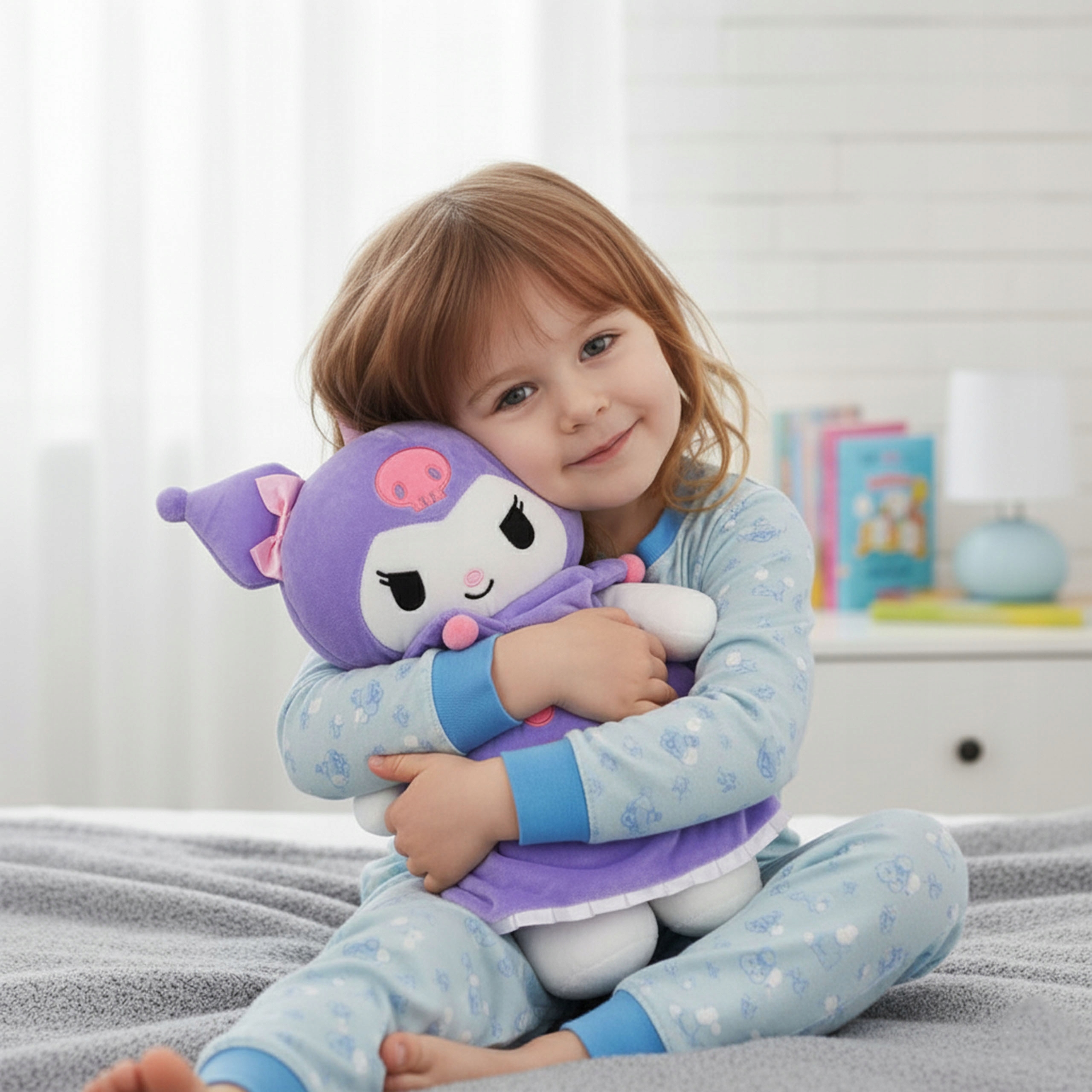 Плюшевий чохол фіолетового кольору з характерними деталями Kuromi приємний на дотик і захищає від прямого контакту з гарячою поверхнею.
