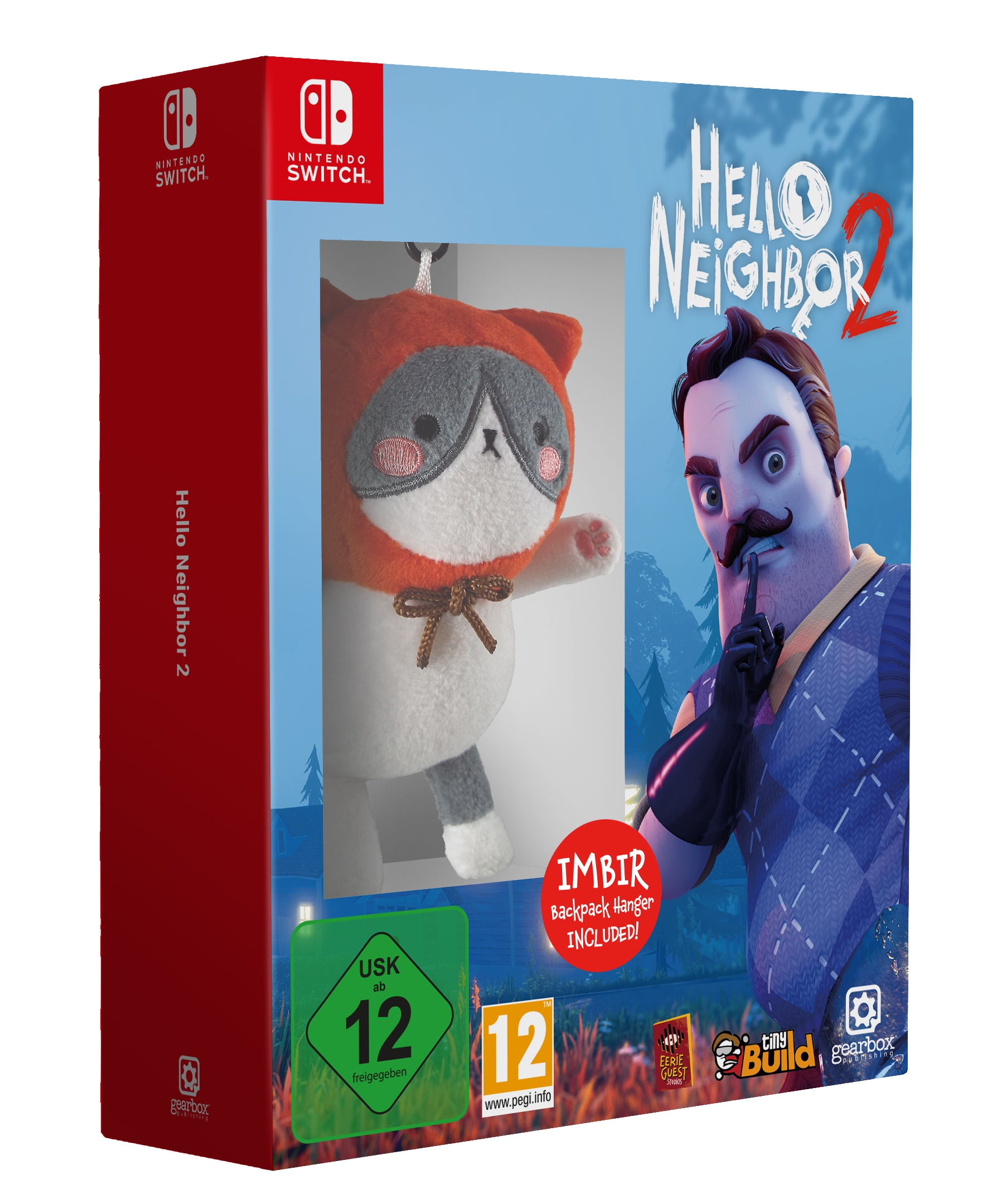 Ексклюзивне видання гри, включаючи стандартне видання Hello Neighbor 2 і брелок для рюкзака із зображенням NPC гри Джинджер.
