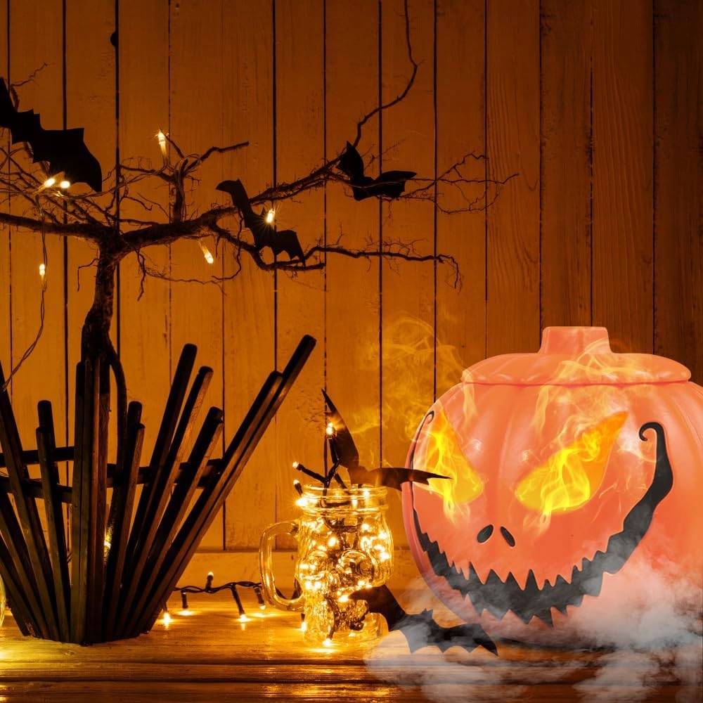 🎃 гарбузовий набір на Хеллоуїн - виробник туману з відром гарбуза для подарунків для вечірки на Хеллоуїн та прикраси для майбутньої вечірки на Хеллоуїн на цьому фестивалі, що проводиться один раз на рік. Ідеально підходить для вечірки на Хеллоуїн, тематичні події. Ночі. Увімкніть електроенергію і буде працювати. Вхідна напруга - 24 В, що є безпечною напругою. (Використовуйте очищену воду, а не водопровідну воду)