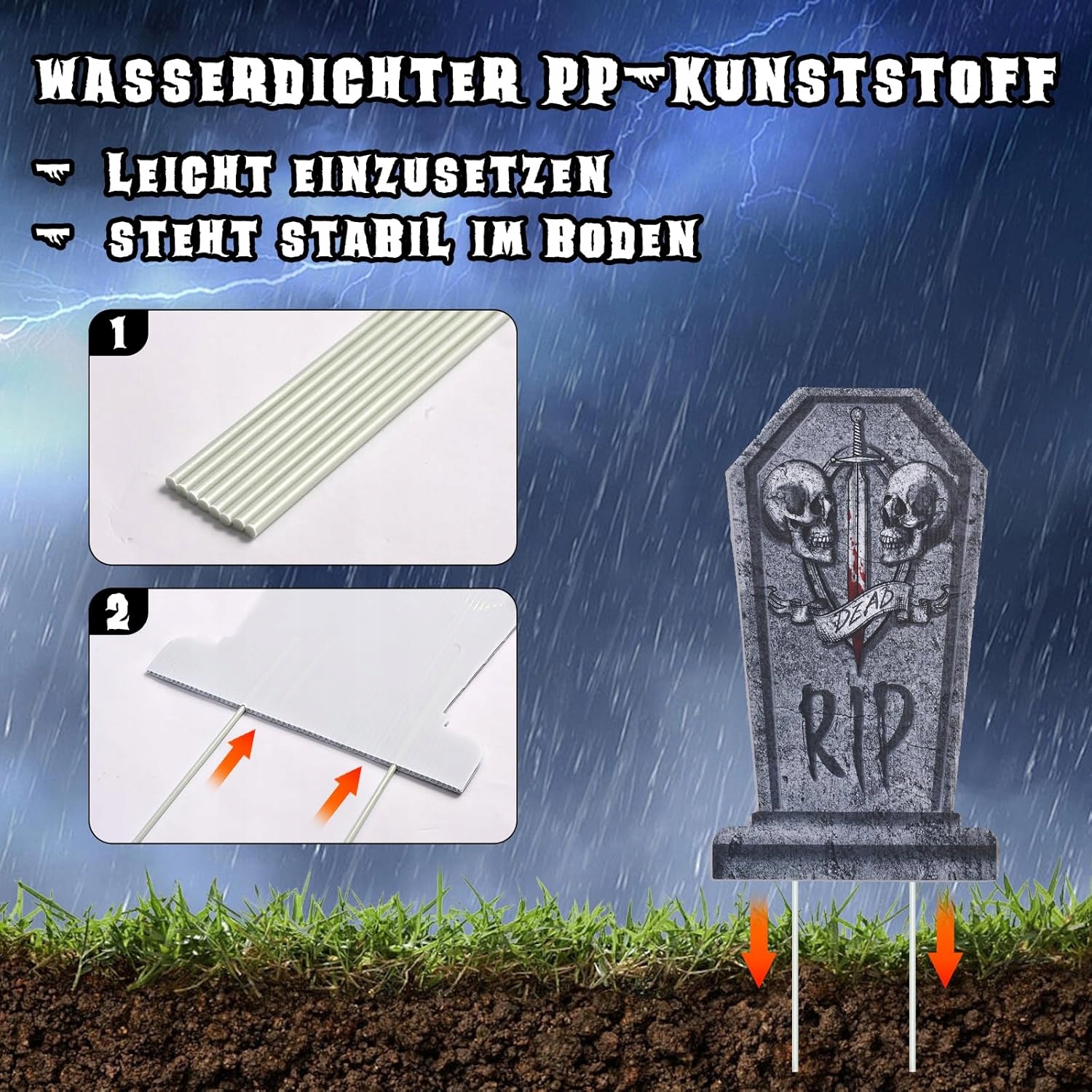 світиться надгробки на Хеллоуїн із світлодіодними ланцюгами (4 шт.)