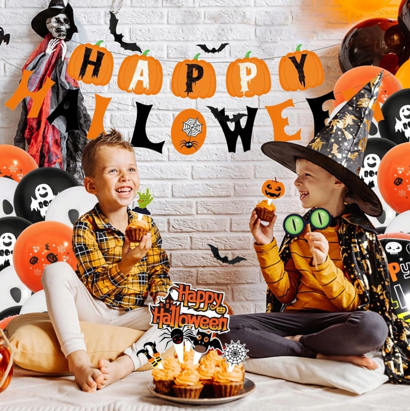 ✅ Повний набір прикрас Хеллоуїна - містить повітряні кулі, Гарленд, Кеккейські топпери та фотографії для фотографій - все, що потрібно для прикраси місця в стилі Хеллоуїна.