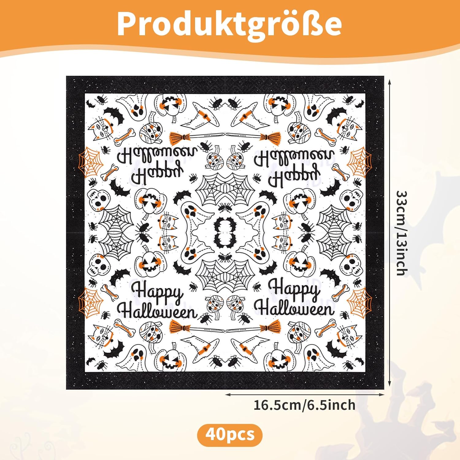 Хеллоуїн серветки 40 штук 16,5 × 16,5 см гарбузовий павук -павук