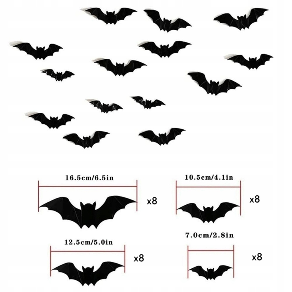 Цей набір характеризується м'яким, легким, стійким до складок та міцною текстурою. Три -вимірні наклейки кажанів можна багаторазово використовувати, а складні крила створюють тривимірний ефект. Легко створюйте примарну атмосферу, прикрашаючи стіни, двері та вікна.
