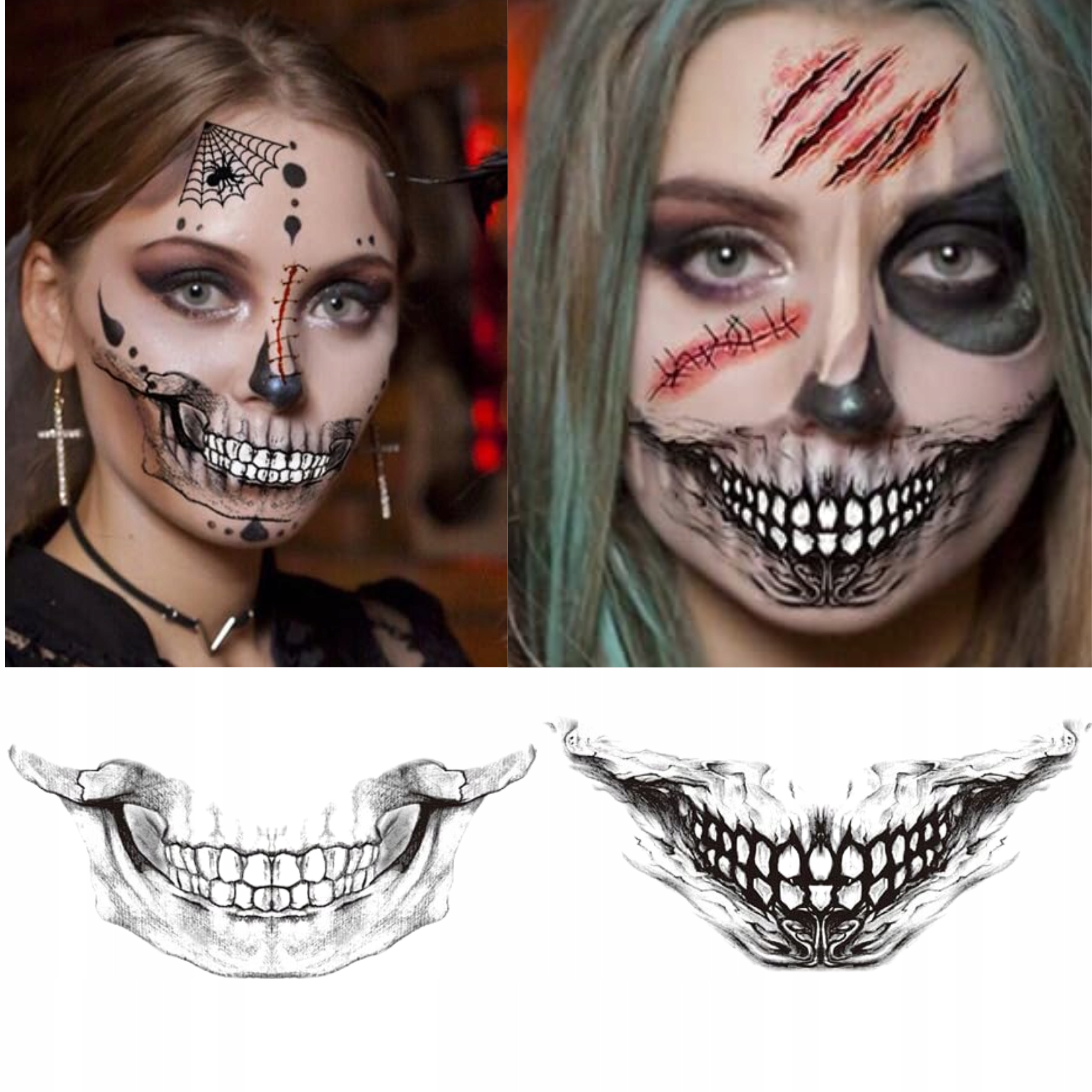 Набір татуювань на Хелловін, для вечірки, прикраса для рота зі страшним обличчям - 10 предметів