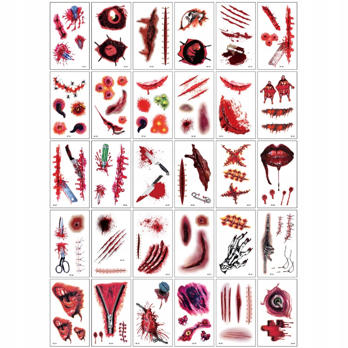 Хеллоуїн татуювальні поранення шрами 60 штук! Реалістичний, водонепроникний - WA+WB 5.7x9.7cm Set