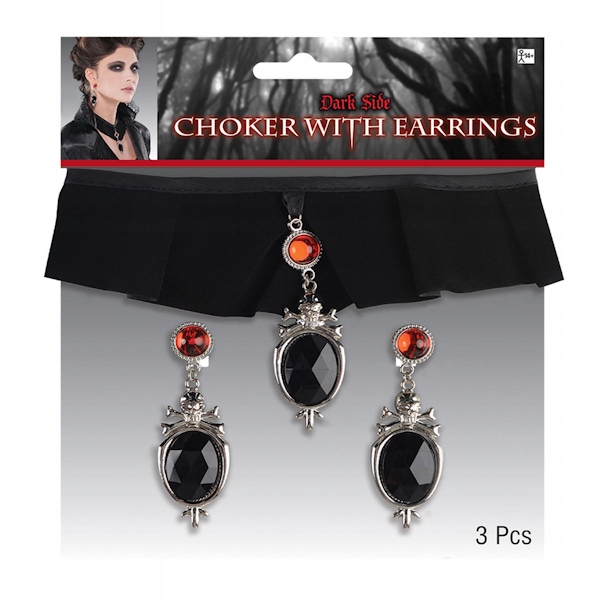 Набір сережок та гурту шиї з підвіскою, що відповідає наряду вампірів на Хеллоуїн.