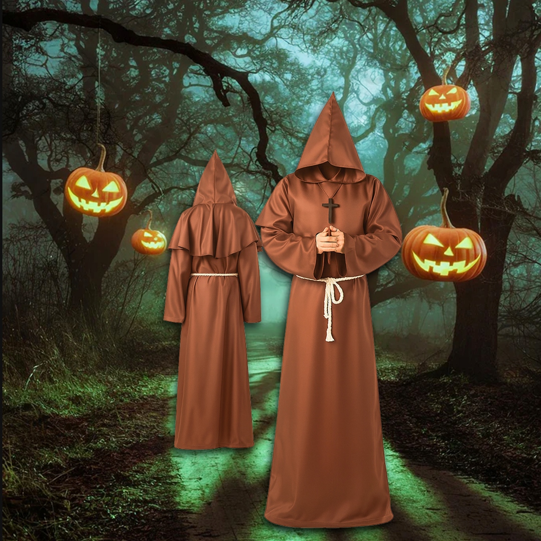 Подаруйте частинку таємничої атмосфери середньовічного монастиря на будь-яку костюмовану вечірку! Цей класичний світло-коричневий чернечий габіт є повним набором, який ідеально підходить для Хелловіна, вертепу, шкільних вистав, карнавалів і тематичних заходів.