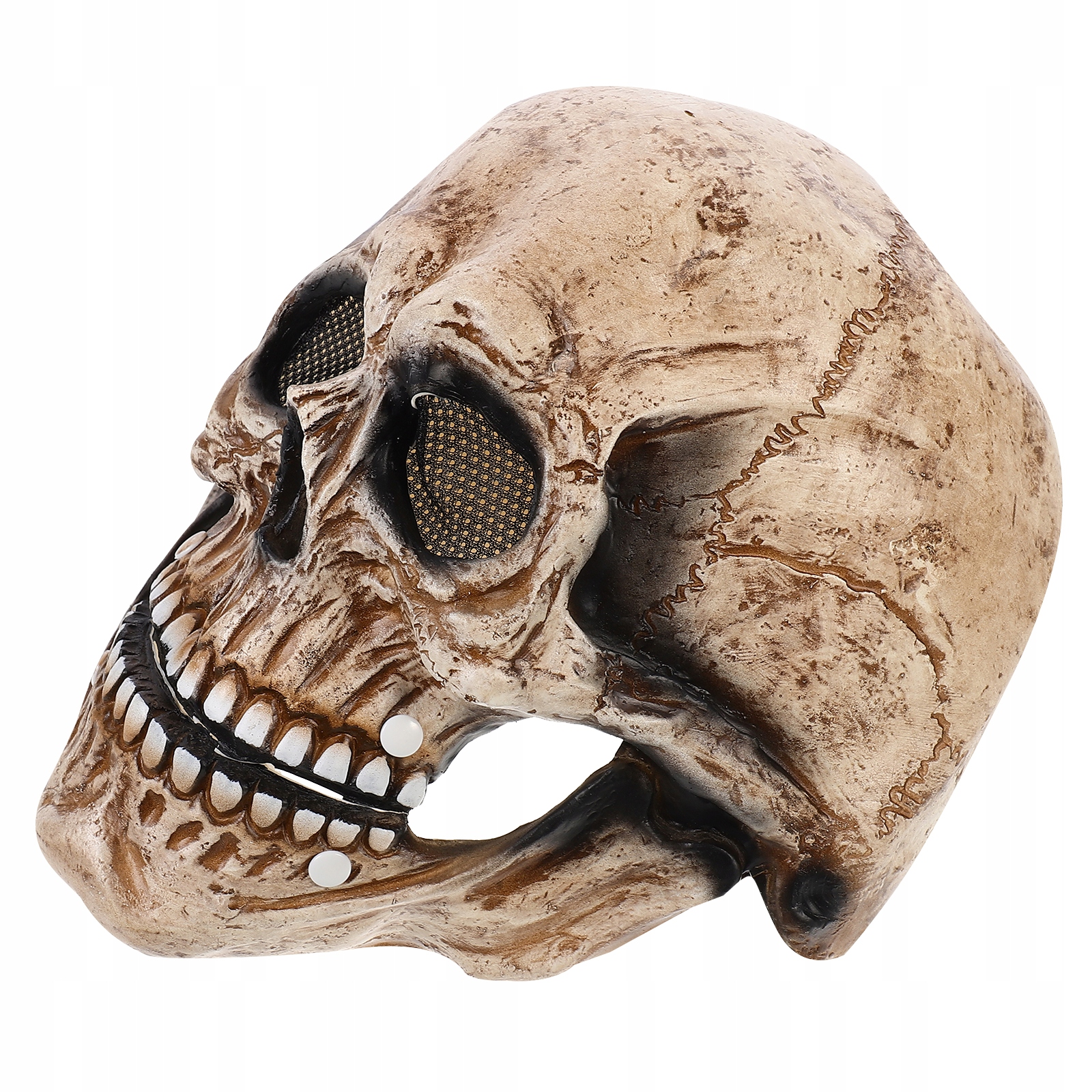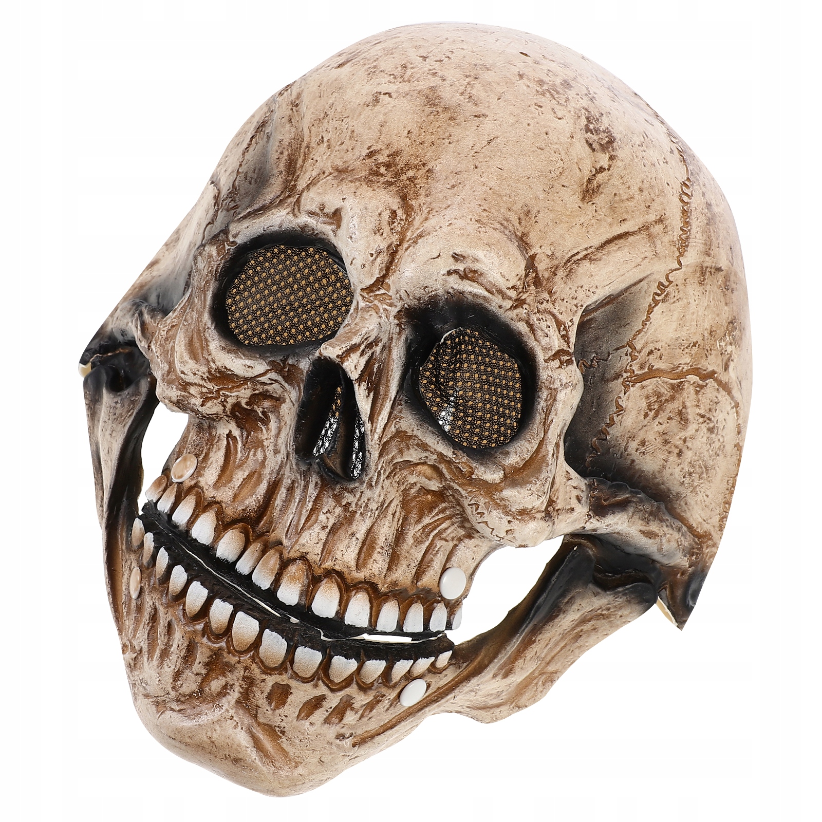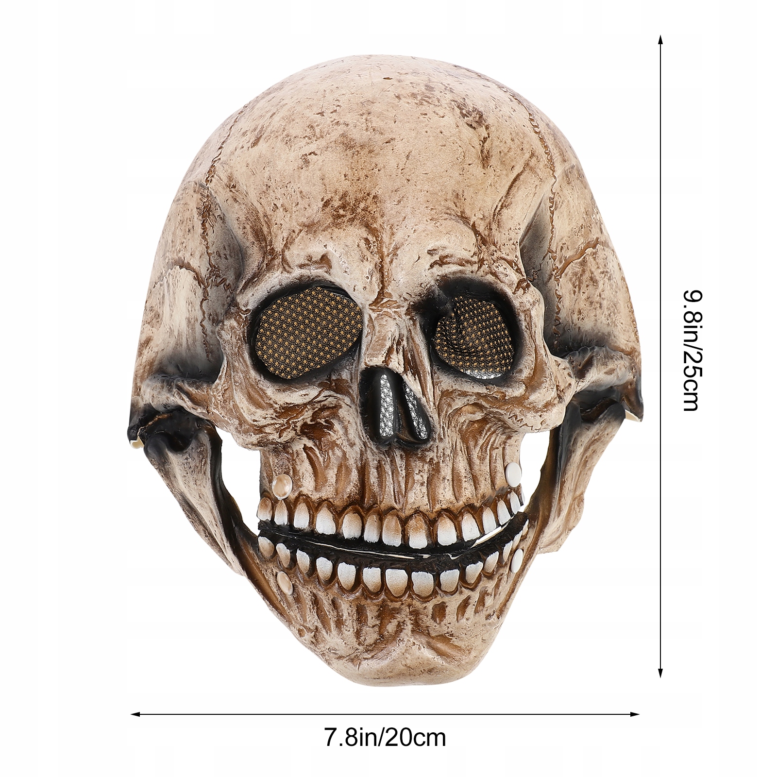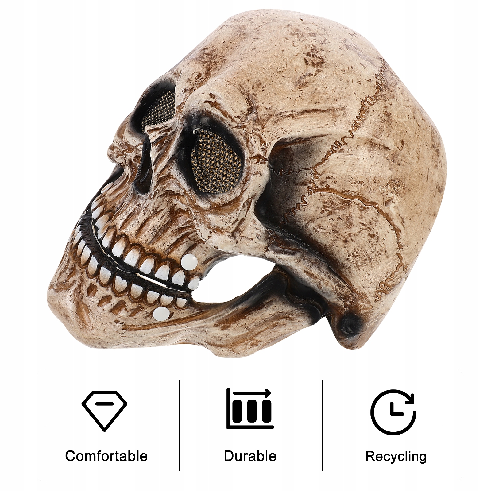 Маска має рухливу нижню щелепу. Одягнувши маску, ви можете імітувати скелет, щоб говорити. Він дуже зручний у використанні та дуже яскравий.