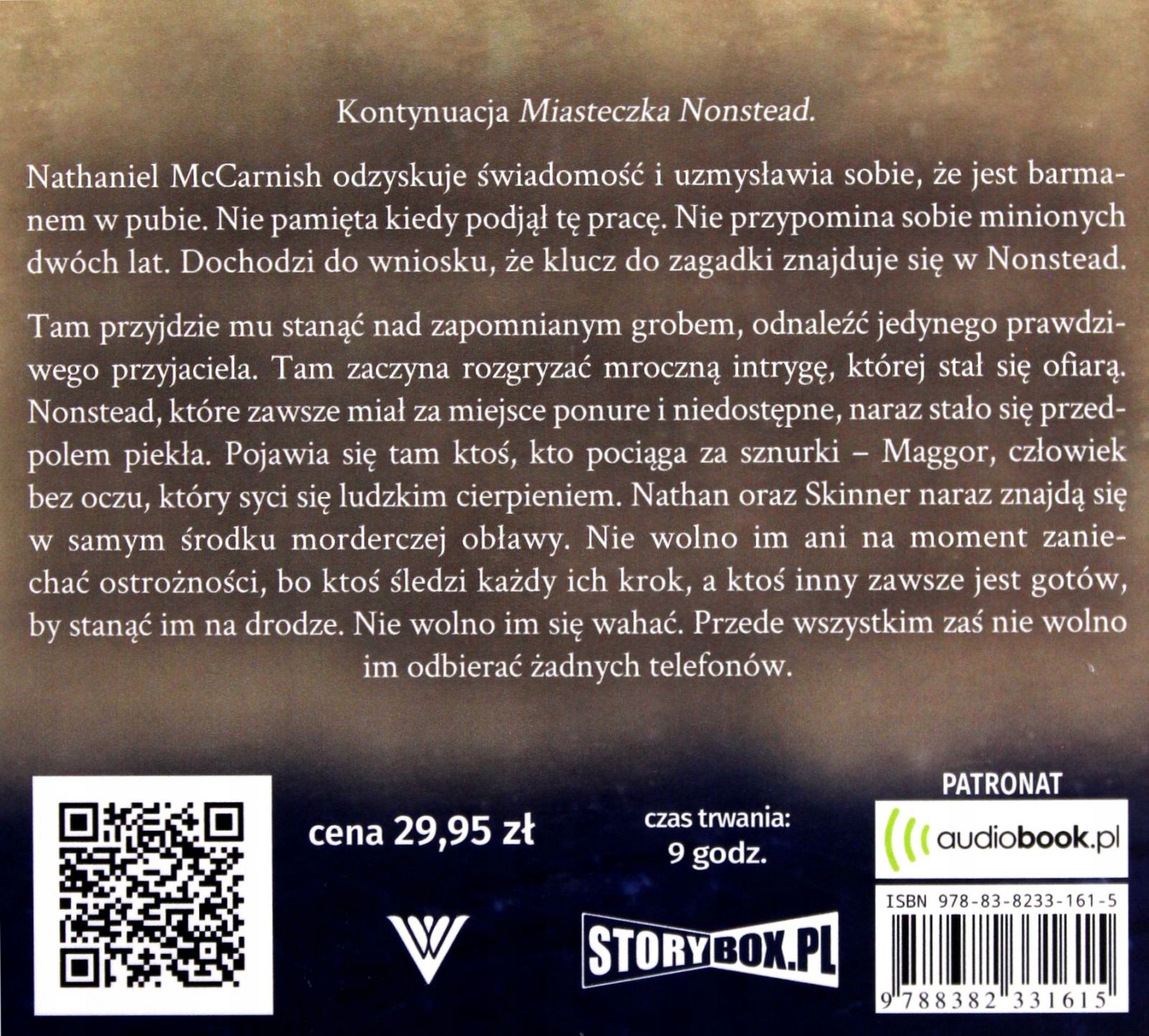 Продовження "Місто Нонстед". Здавалося б, ті, хто потрапляє в Нонстед, насправді ніколи не виїдуть. Натаніель МакКарніш приходить до тями і розуміє, що він бармен у пабі. Він не пам'ятає, що змусило його піти на цю роботу, і більше того, він не пам'ятає останні два роки. Незабаром він приходить до висновку, що ключ до таємниці в Нонстеді. Там йому доведеться стояти над забутою могилою. Там він знайде свого єдиного вірного друга і там, посеред морозної зими, починає розплутувати темну інтригу, жертвою якої став. Незабаром він розуміє, що Нонстед, який він завжди вважав похмурим і недоступним місцем, раптом став чиїмось першопланом пекла. Є хтось, хто смикає за ниточки - Магор, людина без очей, яка живиться людськими стражданнями. Натан і Скіннер опиняться в центрі вбивчого полювання. Вони не повинні втрачати пильність ні на хвилину, тому що хтось стежить за кожним їхнім кроком, а хтось завжди готовий стати на їх шляху. Їх не можна звільняти. Вони не повинні вагатися. Понад усе, їм заборонено відповідати на дзвінки.