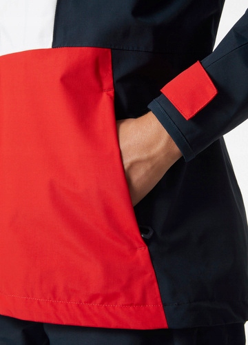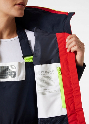 HELLY HANSEN IN NEWPORT REGATTA SAILING JACKET - це сучасна, легка штормова куртка для жінок, яка поєднує в собі професійну технологію матеріалів у сфері захисту з традиційним дизайном куртки з 90-х років. Виготовлена з використанням двошарової мембрани Helly Tech® Performance, вона повністю пропускає повітря та забезпечує комфорт і захист під час внутрішньої навігації та прибережної навігації. Оснащений, серед іншого: з високим коміром, обробленим флісом, подвійними манжетами, регульованим світловідбиваючим капюшоном, прихованим у комірі, і світловідбиваючими панелями SOLAS на рукавах. У виробництві куртки використовувалися перероблені матеріали за технологією Ocean Bound.