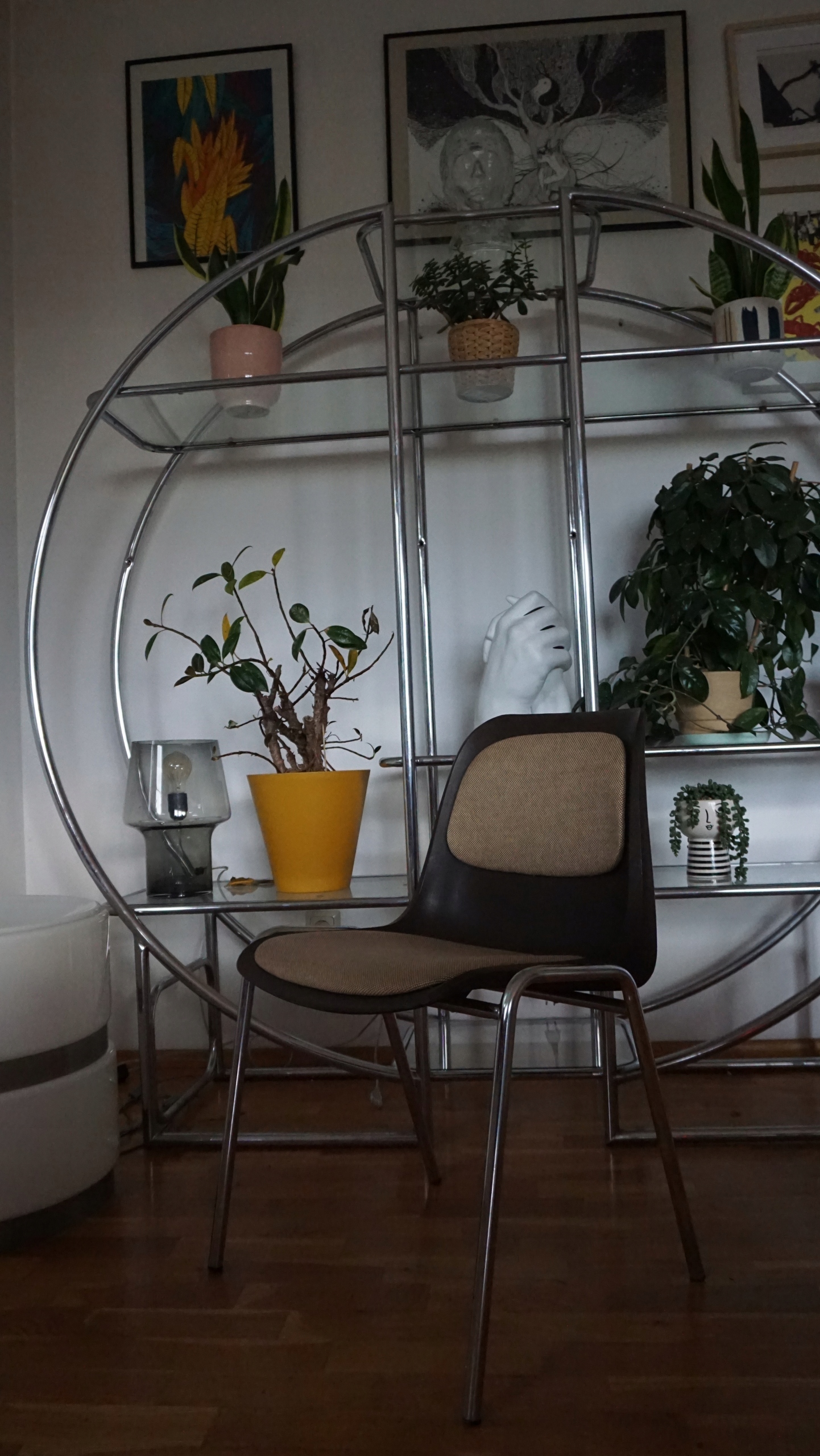 Helmut Starke, 4 складені стільці, модель "Європа", пластик, сталь, хром, 70 -х, Німеччина. Набір, що складається з 4 стільців, складених пластиковим сидінням та хромованою сталевою рамою, оснащеною пластиковими захисниками, з написом виробника на дні.